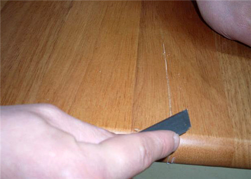 2. practice the prepared white latex glue flippantly into the cracks to fill them. If there are excess glue portions, use a putty knife to scrape and clean them up.