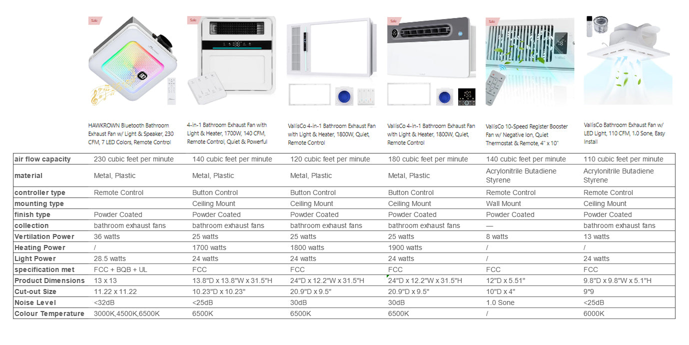 230 CFM powerful ventilation with only 1.0 Sones noise, quickly removes moisture and odors while keeping your bathroom fresh.