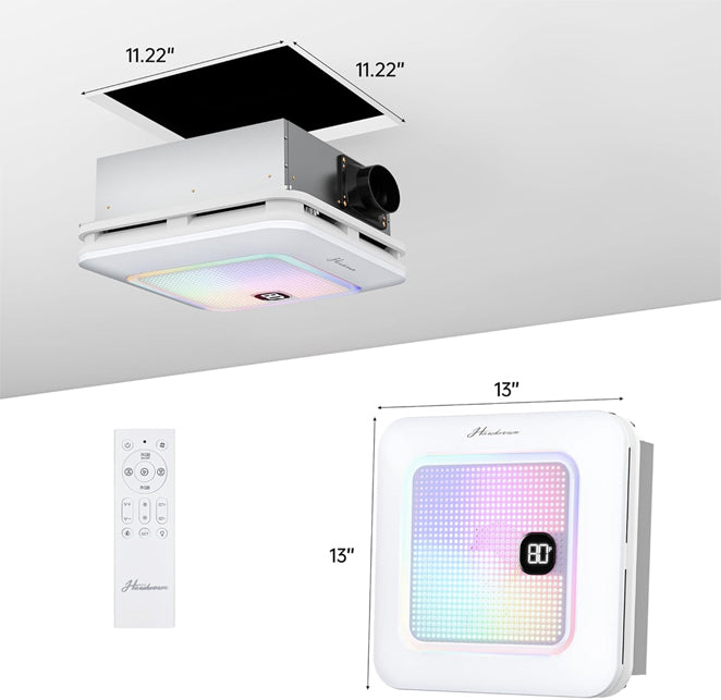 Bluetooth Bathroom Exhaust Fan w/ Light & Speaker, 230 CFM, 7 LED Colors, Remote Control
