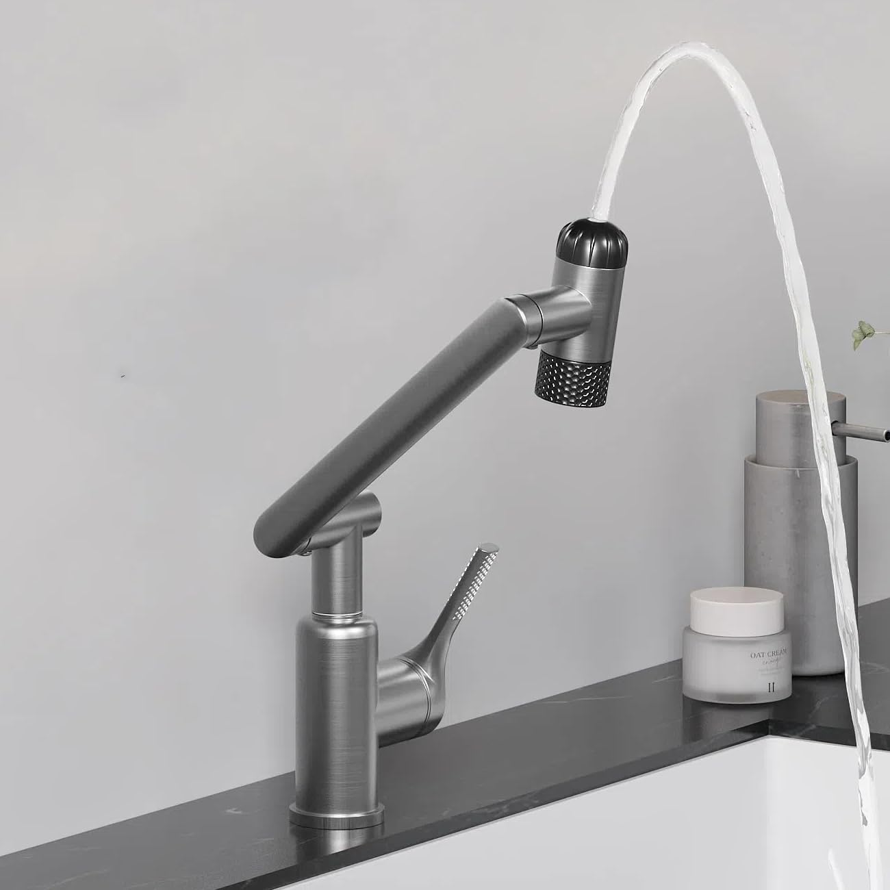 1080Β° Rotatable Bathroom Faucet, 1 Hole Single Handle Bathroom Faucet with 4 Water Outlet Modes, Brushed Swivel Arm Faucet for Bathroom Kitchen and RV