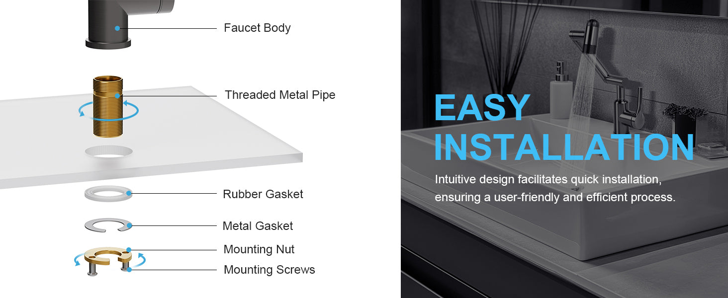 - ππππ ππ πππππππ - The faucets for bathroom sinks is designed for single-hole countertops and can be easily installed in less than 15 minutes, and this bathroom basin faucet has a single-lever control for both hot and cold water, which allows you to control the temperature independently and adjust the flow of water easily.