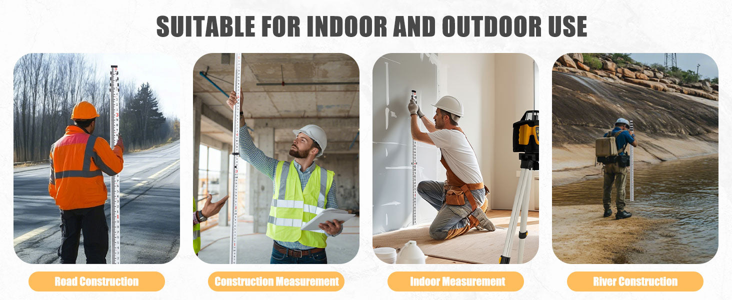 - Versatile Use: Lightweight and portable, this rod works great indoors and outdoors. Perfect for measuring elevation changes on job sites or precision leveling with construction lasers and optical tools.