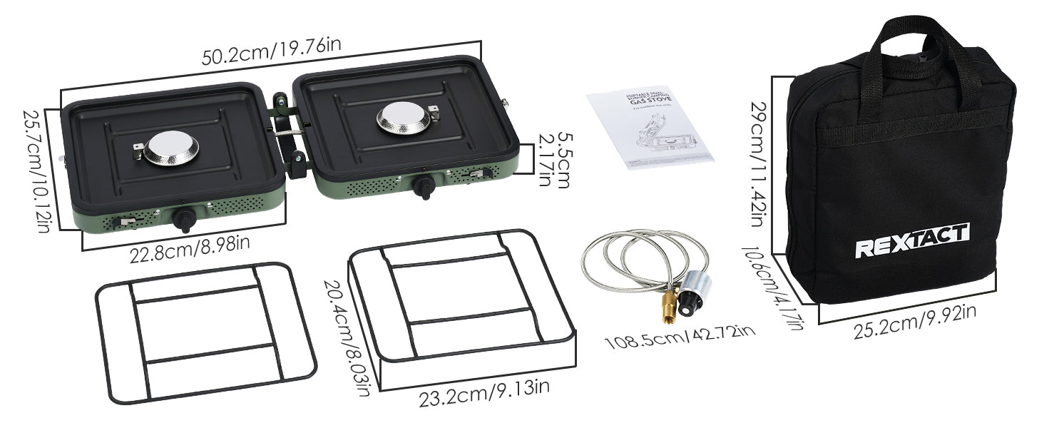 - 【Portable and Foldable Design】 The camping stove propane features a comfortable handle and a compact size when folded. Portable stove for camping Comes with a thoughtful storage bag that can hold accessories and allows you to pack it up after use without worrying about grease staining other items. Easy to carry and hassle-free to store