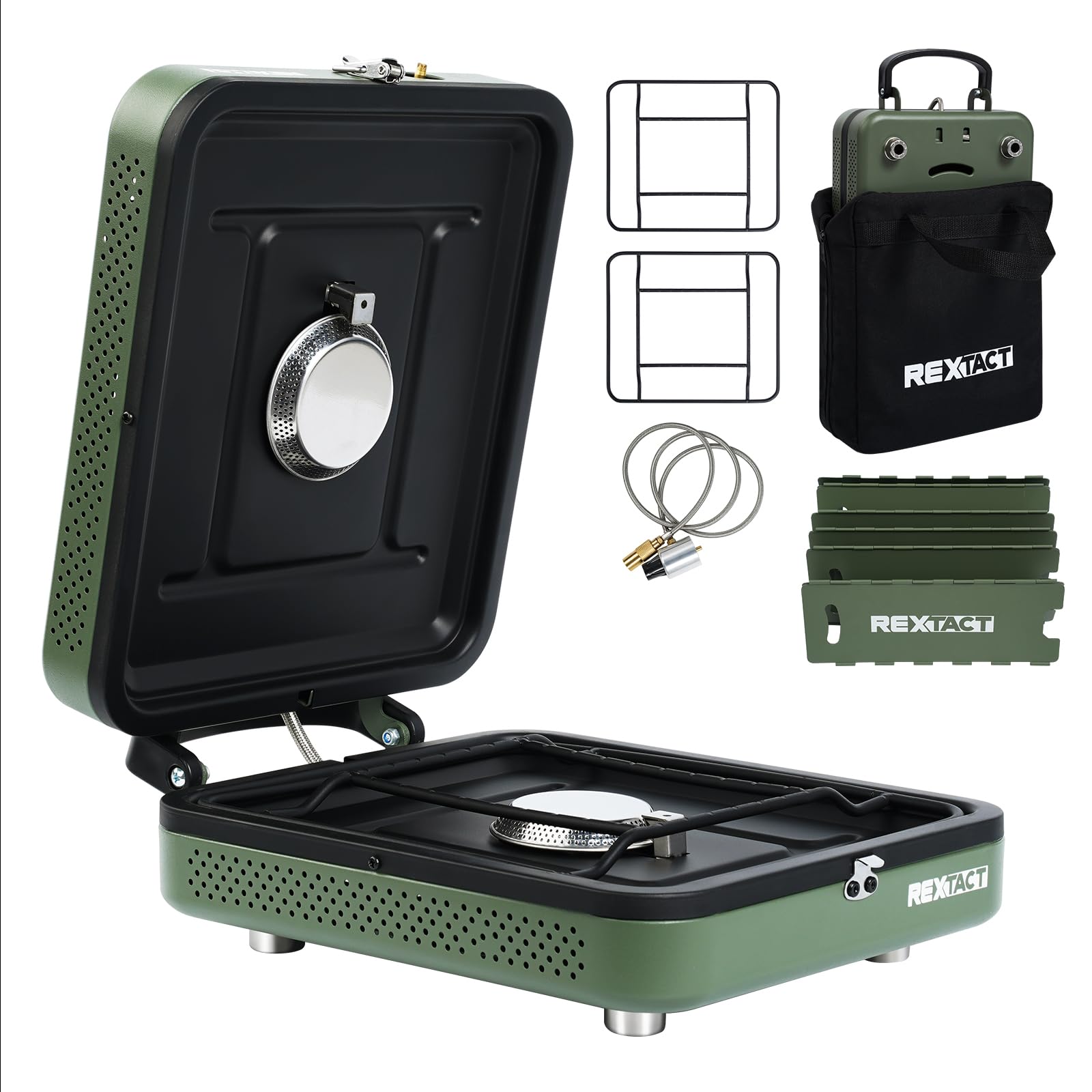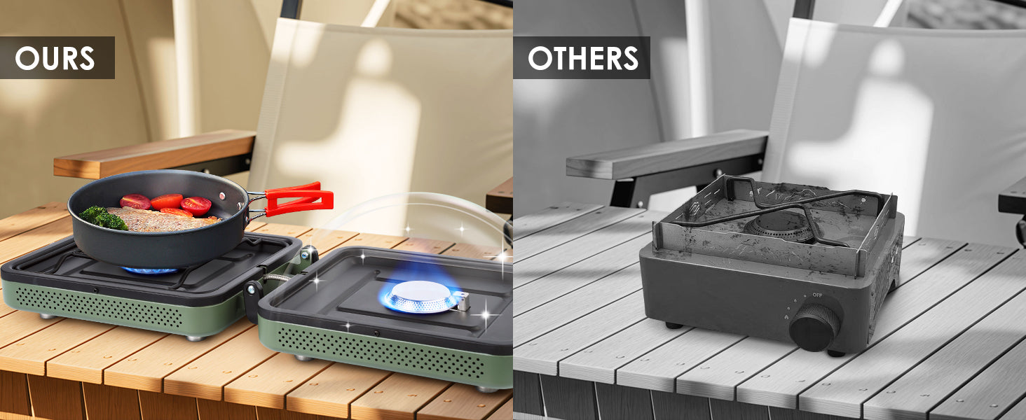 - 【Durable and Easy to Clean】The foldable camping stove is built for durability with a high-temperature-resistant steel body and a corrosion-resistant stainless steel burner. The camping stoves portable propane upgraded non-slip matte grate keeps pots stable, while key components are easy to disassemble for cleaning. The portable propane stove's heat-resistant coating on the stove surface ensures simple, hassle-free maintenance.