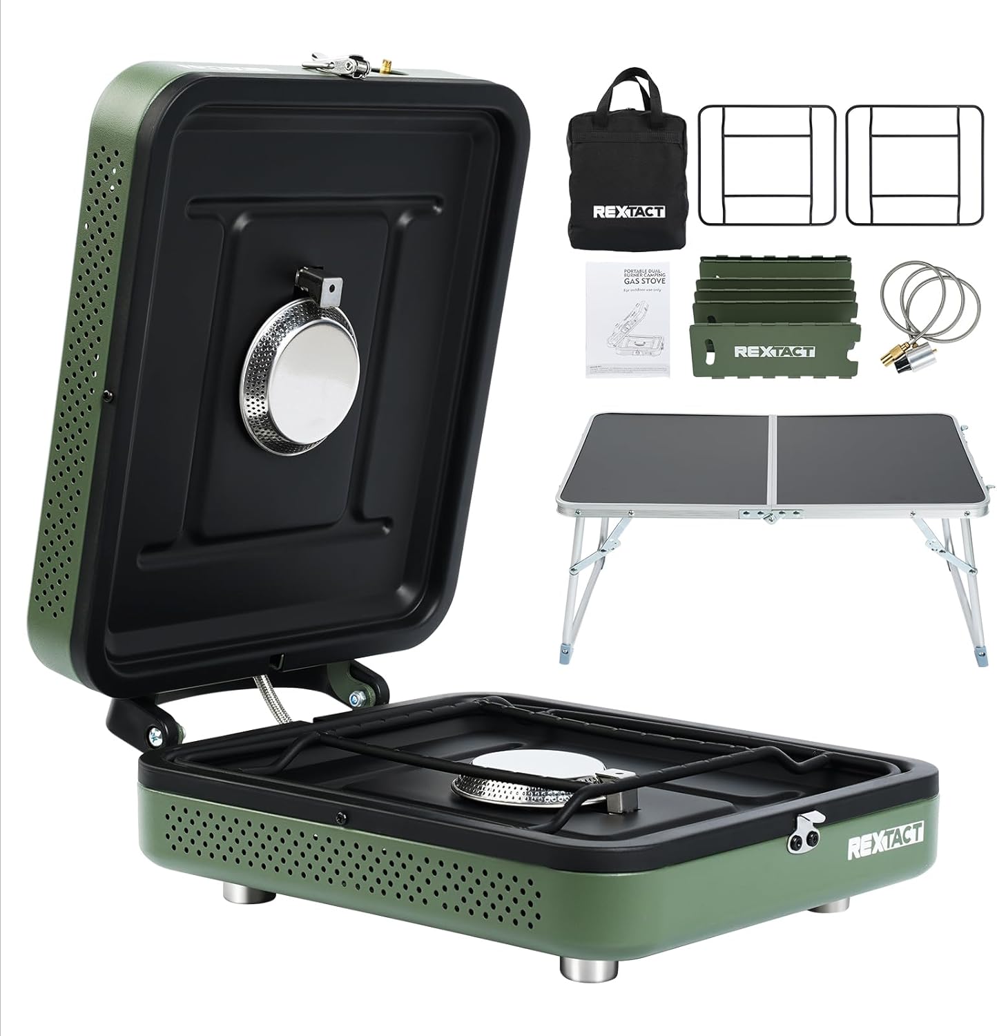 2-Burner Camping Stove with Carrying Bag, Windscreen, Table, 17,200 BTU, Portable BBQ Stove