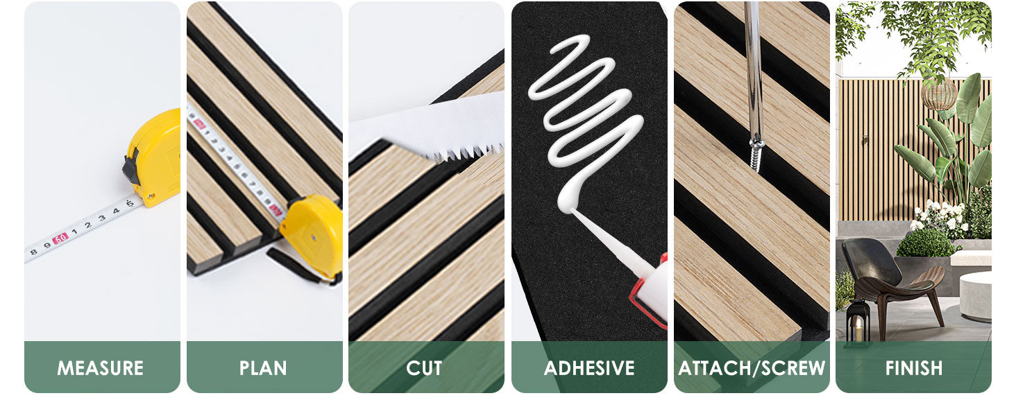 - Easy to Install: The wood slat wall panels offer flexible installation options, allowing you to mount them either horizontally or vertically, and even customize their shape to suit your design. Installation is quick and straightforward—simply use screws or adhesive to securely attach the panels to walls or ceilings. These wood wall panels provide an immediate improvement to the sound quality in your space, enhancing both the acoustics and aesthetics of any room.