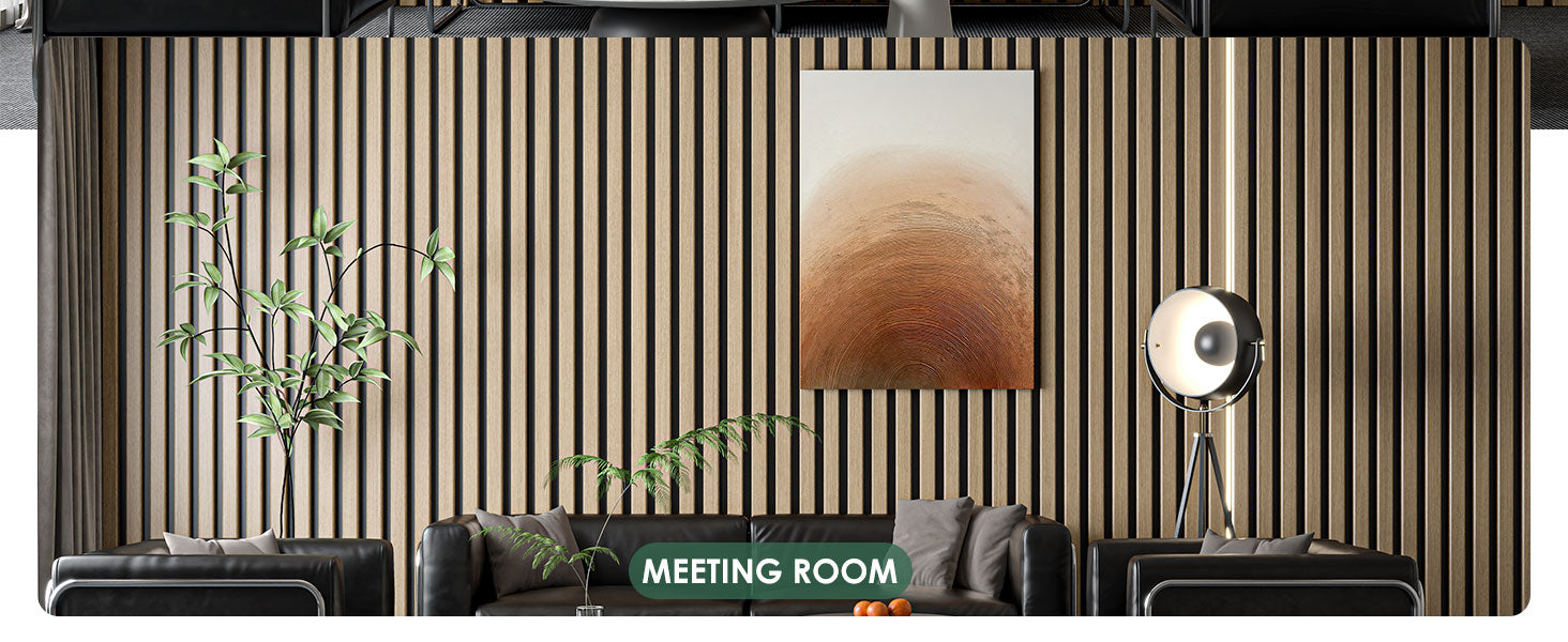 - Eco-friendly: Designed using environmentally friendly materials, these wood slat wall panels are crafted to be durable, resistant to deformation, and possess high strength. Additionally, they have low TVOC (Total Volatile Organic Compound) emissions, making them a sustainable choice for any interior. These wood wall panels combine aesthetic elegance, acoustic effectiveness, and eco-conscious production to create a superior solution for noise control and room decoration.