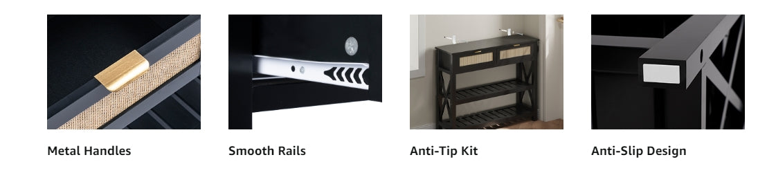 - Console Table with Drawers: Elegantly designed with 3 rattan drawers, this high-end white modern-style entry table with storage complements various decors such as modern and farmhouse styles, offering a refreshing tinge of brightness
