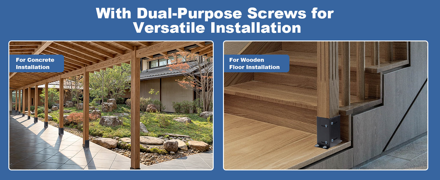 - Enhanced Stability & Secure Attachment With a widened base and reinforced screw holes, this post base provides stronger load-bearing capacity and prevents post shifting. Whether you're working on concrete or wooden flooring, the included screws and expansion bolts allow for a rock-solid installation.