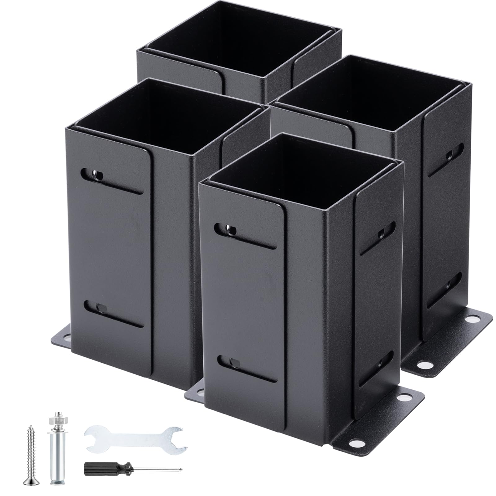 4PCS 4x4 Post Base, Heavy-Duty Anchors (3.5"x3.5"), Black Powder-Coated Steel Brackets for Deck & Fence