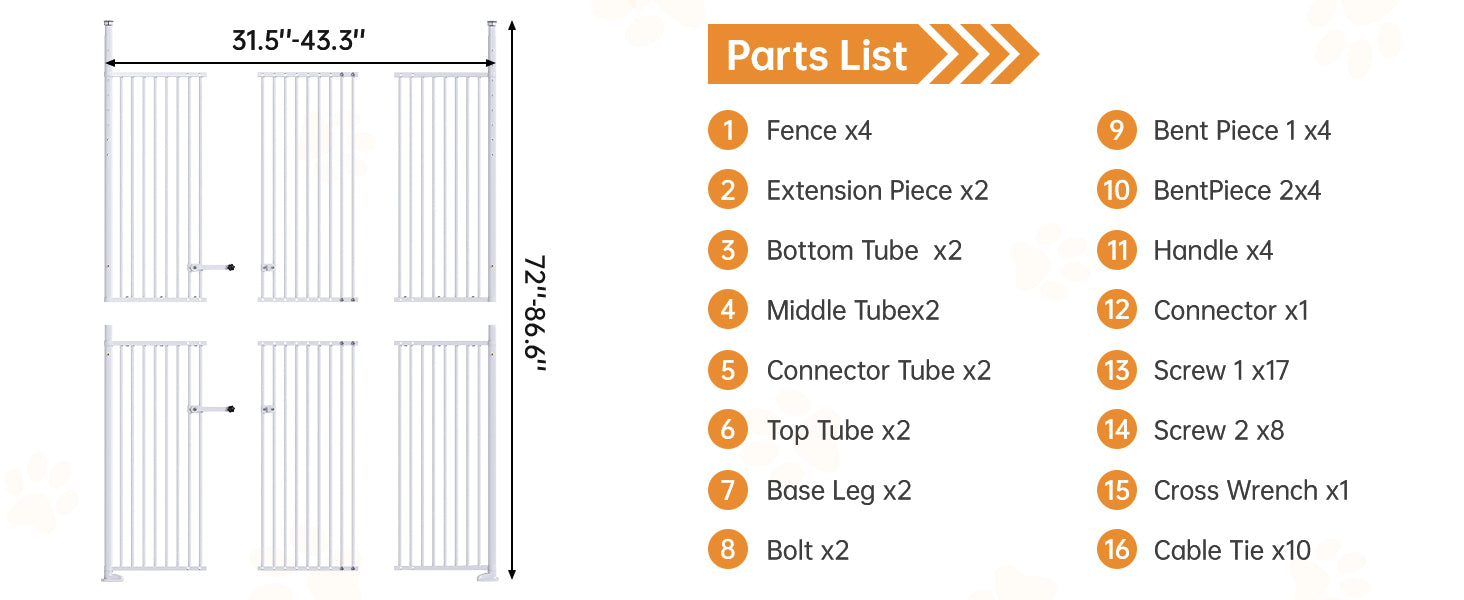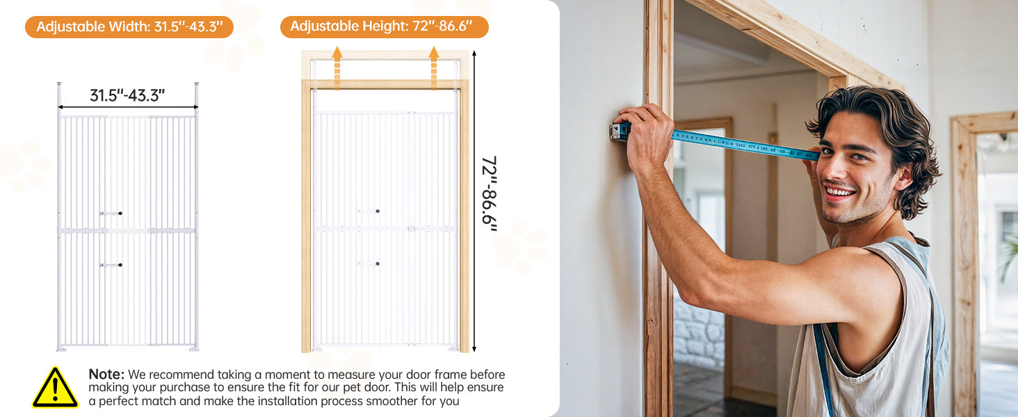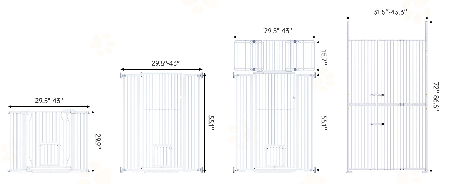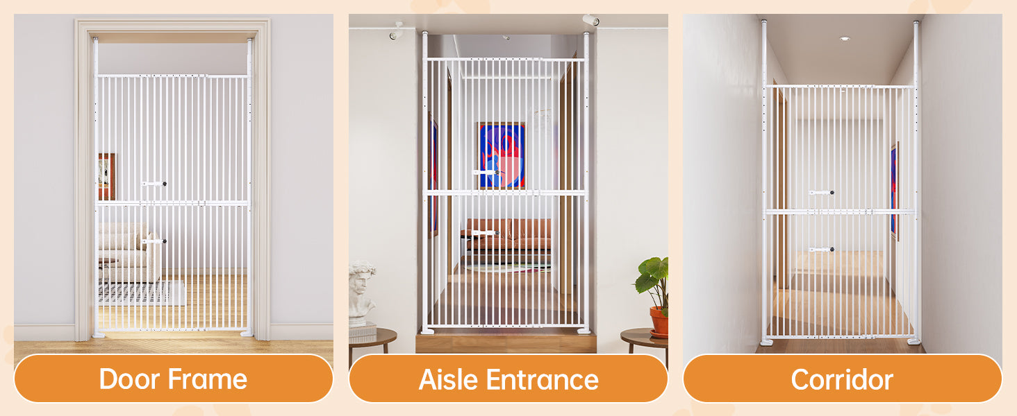 55.1'' Extra Tall Pet Gate for Cat, 29.5-43'' Extra Wide Cat Gate for Doorway with Upgraded Cat Door and 1.37'' Narrower Bar Spacing, NO Drilling Pressure Mounted Dog Gate Indoor