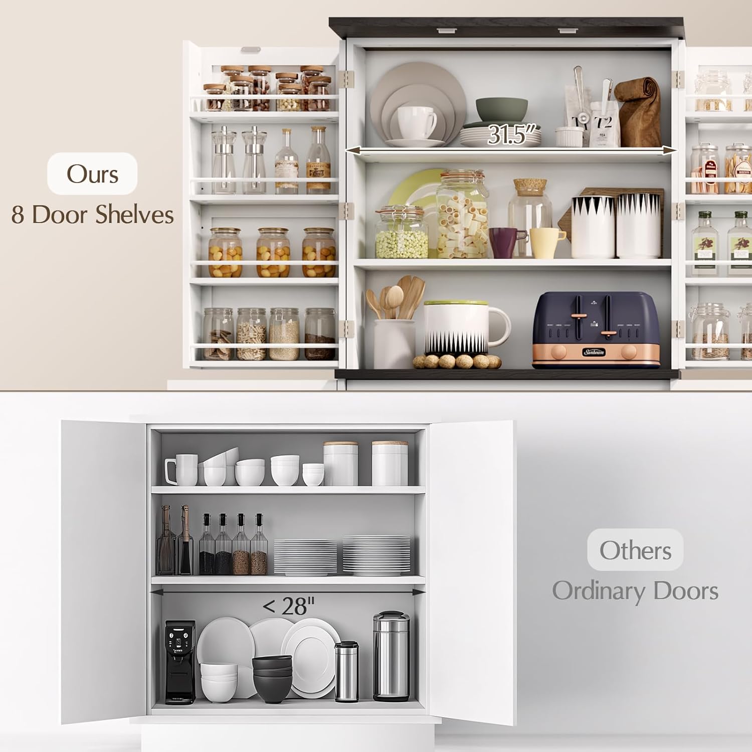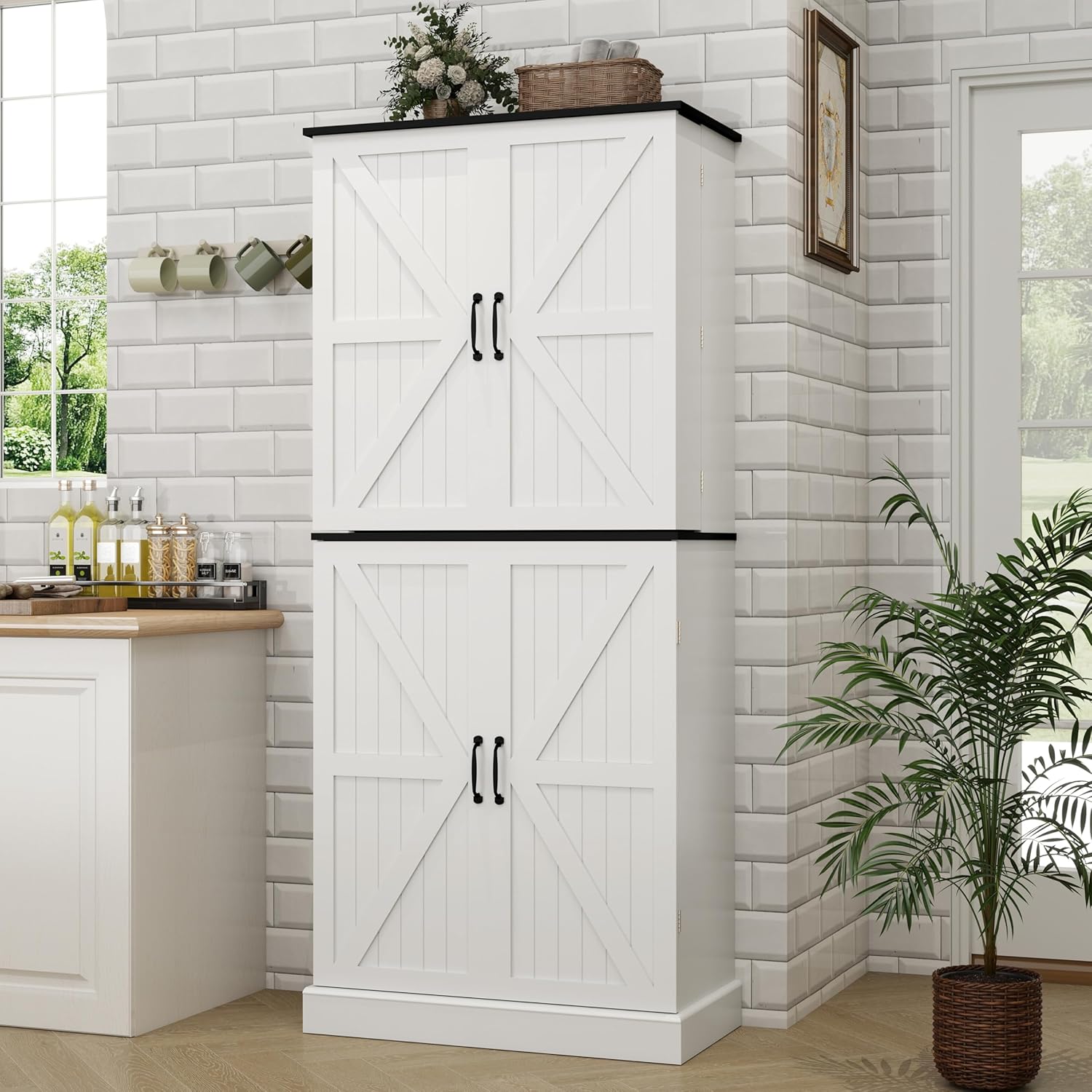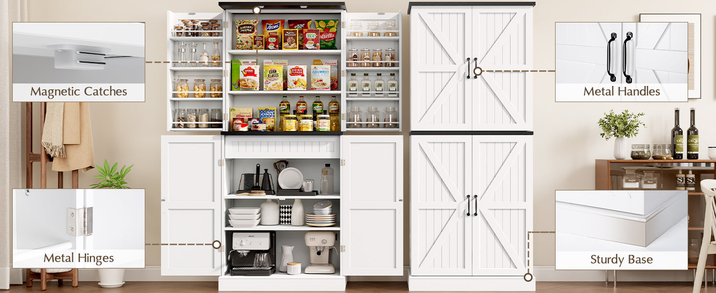 - Farmhouse Style: This farmhouse-style kitchen pantry storage cabinet, while resolving your storage problems, well integrates into your modern decor; Its exquisite lines and black and white colors add a touch of fashion to your home