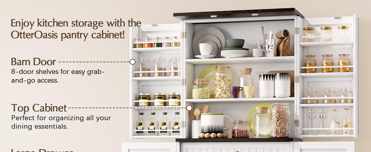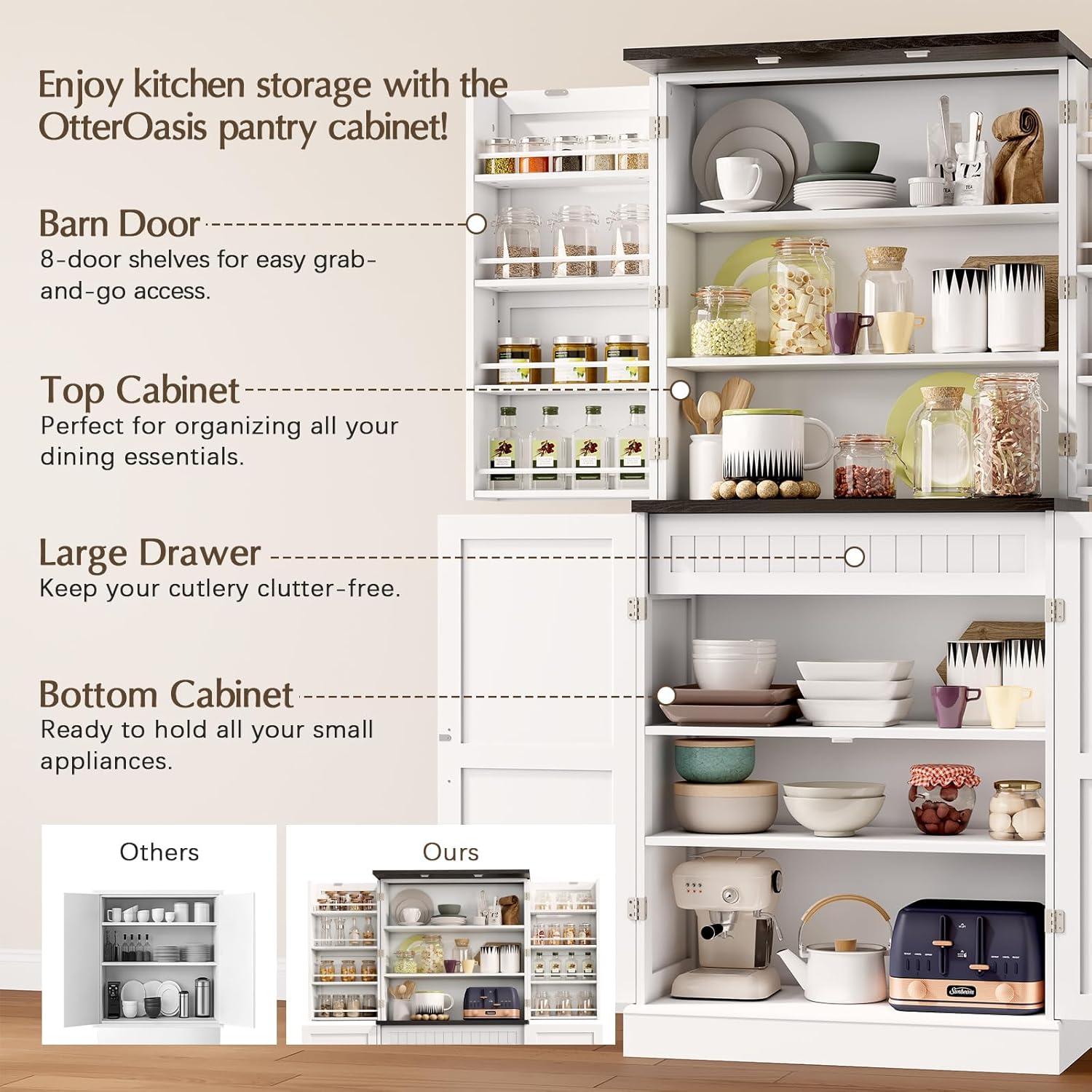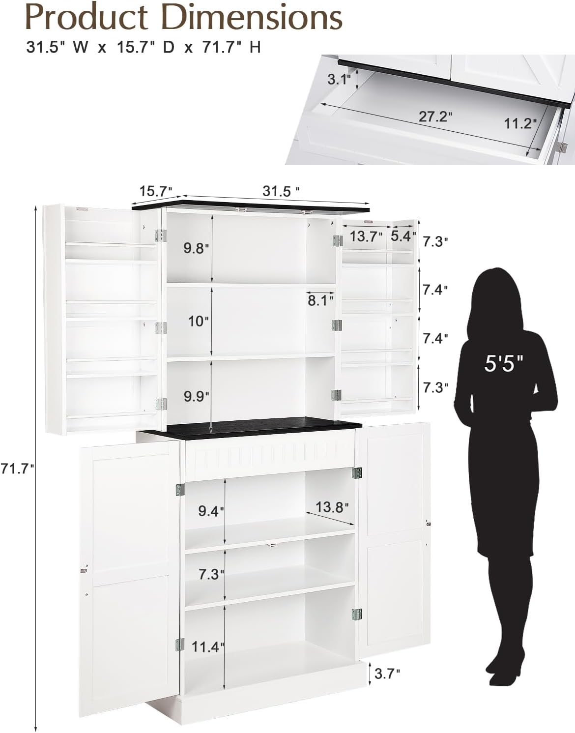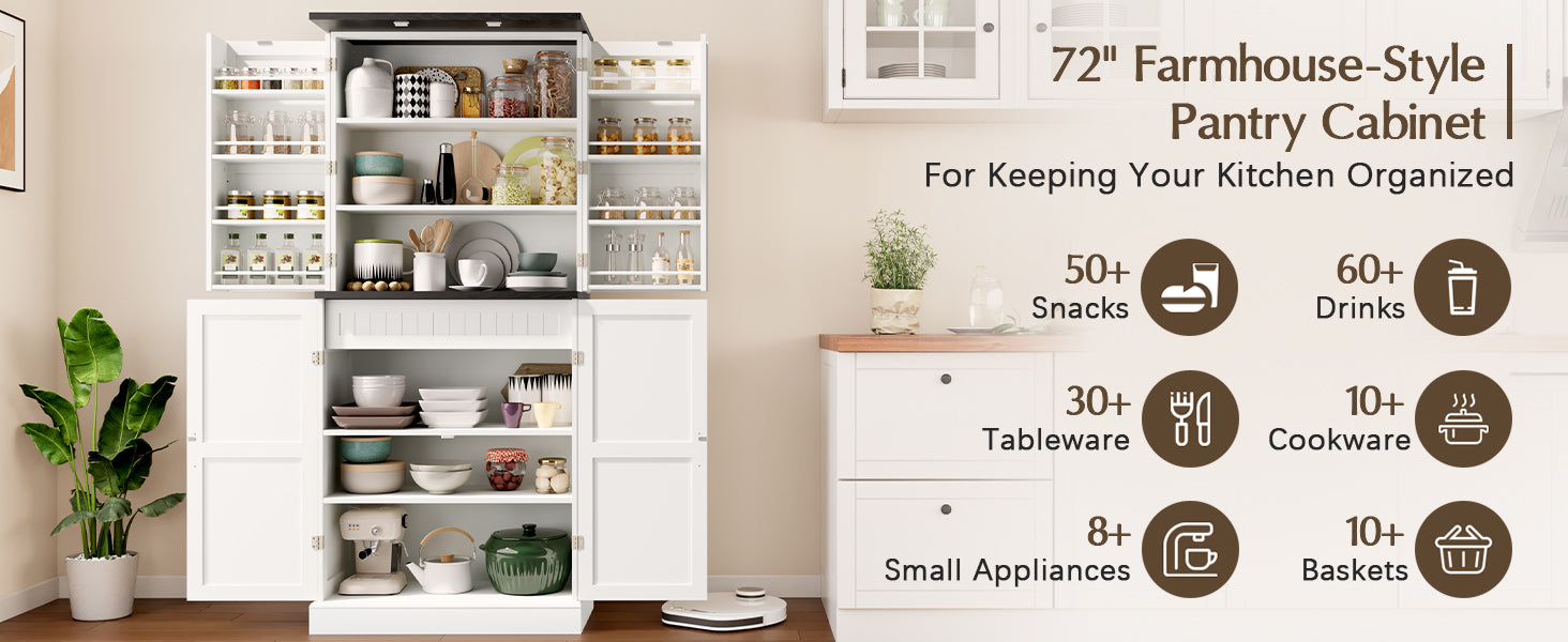 - Farmhouse Style: This farmhouse-style kitchen pantry storage cabinet, while resolving your storage problems, well integrates into your modern decor; Its exquisite lines and black and white colors add a touch of fashion to your home
