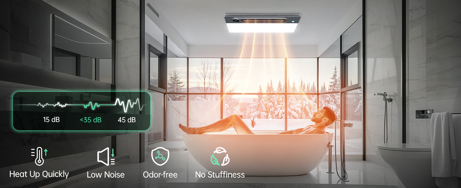 4-in-1 Bathroom Exhaust Fan with Light & Heater, 1800W, Quiet, Remote Control