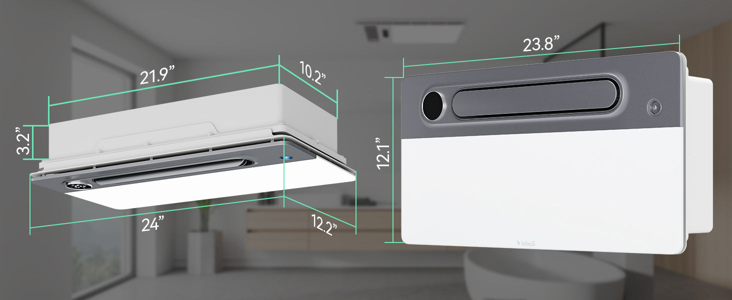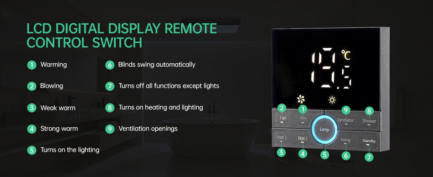 - User-Friendly Features & Safety: Designed for convenience and comfort, this exhaust fan features eye-friendly lighting with soft color tones, perfect for bathroom use. It includes a wireless remote control and an LED display that shows the room temperature for easy monitoring. With overload protection to prevent overheating, the fan with heater automatically shuts off for added safety. The stylish one-piece construction with a chrome-treated display ring complements any modern bathroom design.