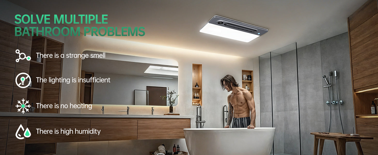 - Enhanced Drying & Ventilation: With the built-in drying function, this bathroom exhaust fan helps quickly dry your bathroom floor, walls, and clothes by combining heat with airflow. Additionally, the ventilator mode ensures proper air circulation to eliminate humidity and odors, keeping your bathroom fresh and dry.