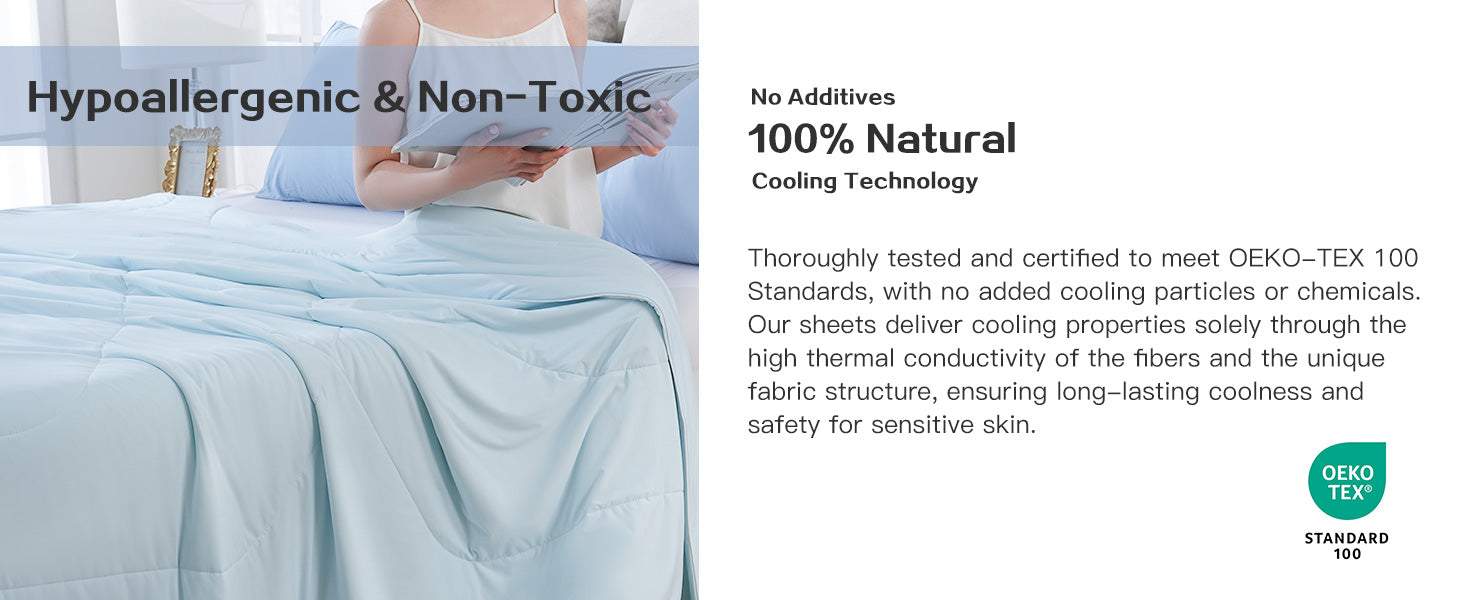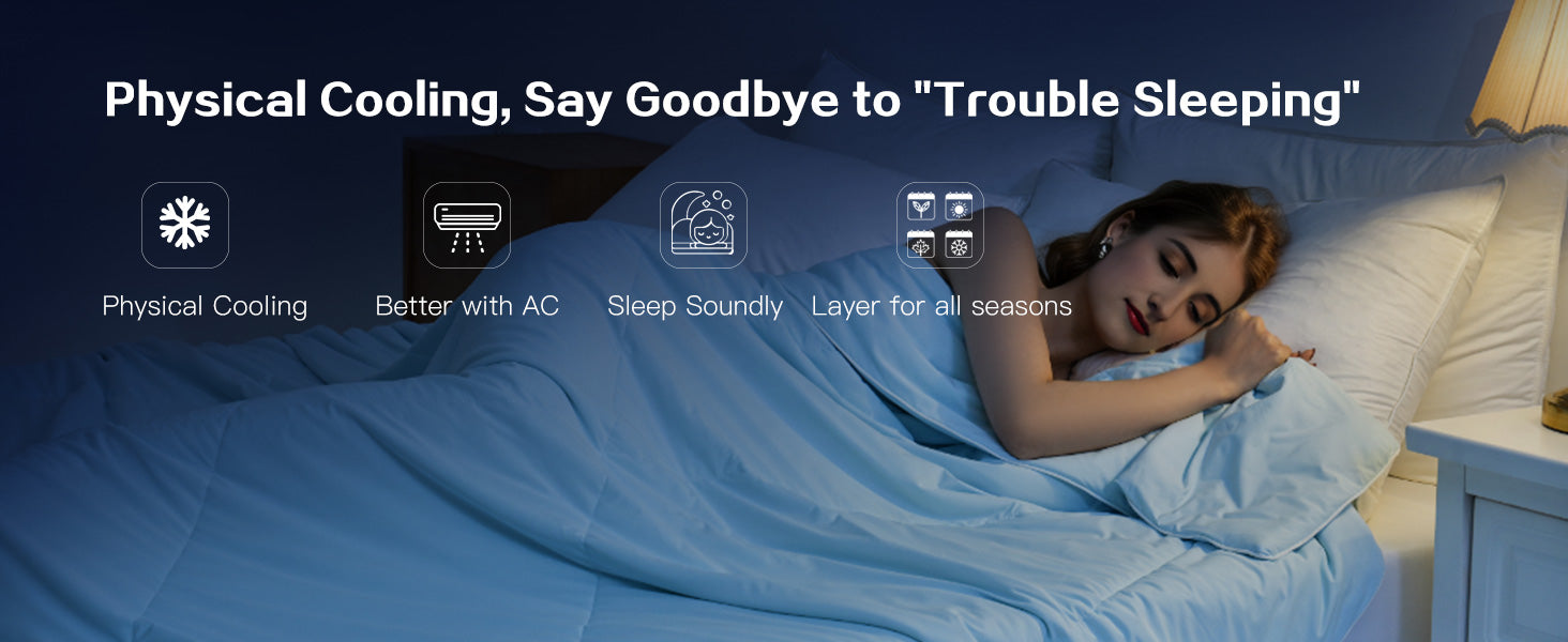 - Durable and Easy to Care: Designed for longevity, this cooling comforter features wear-resistant fabric and single-needle stitching that prevents shifting or clumping. It’s also machine washable, making it easy to clean without color fading or shrinkage. Enjoy a fresh and clean comforter, whether you're using it for a nap or after a busy day.
