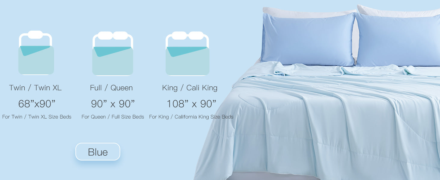 - Versatile Use for Every Setting: Available in multiple sizes (Twin, Full/Queen, King), this cooling comforter is not just for sleep. Whether you're curling up on the couch with a good book, meditating in the garden, or lounging outside on a warm evening, this comforter provides the perfect balance of coolness and comfort to keep you cozy wherever you are. This is ideal for spring, summer, and fall, perfect for all occasions and uses.