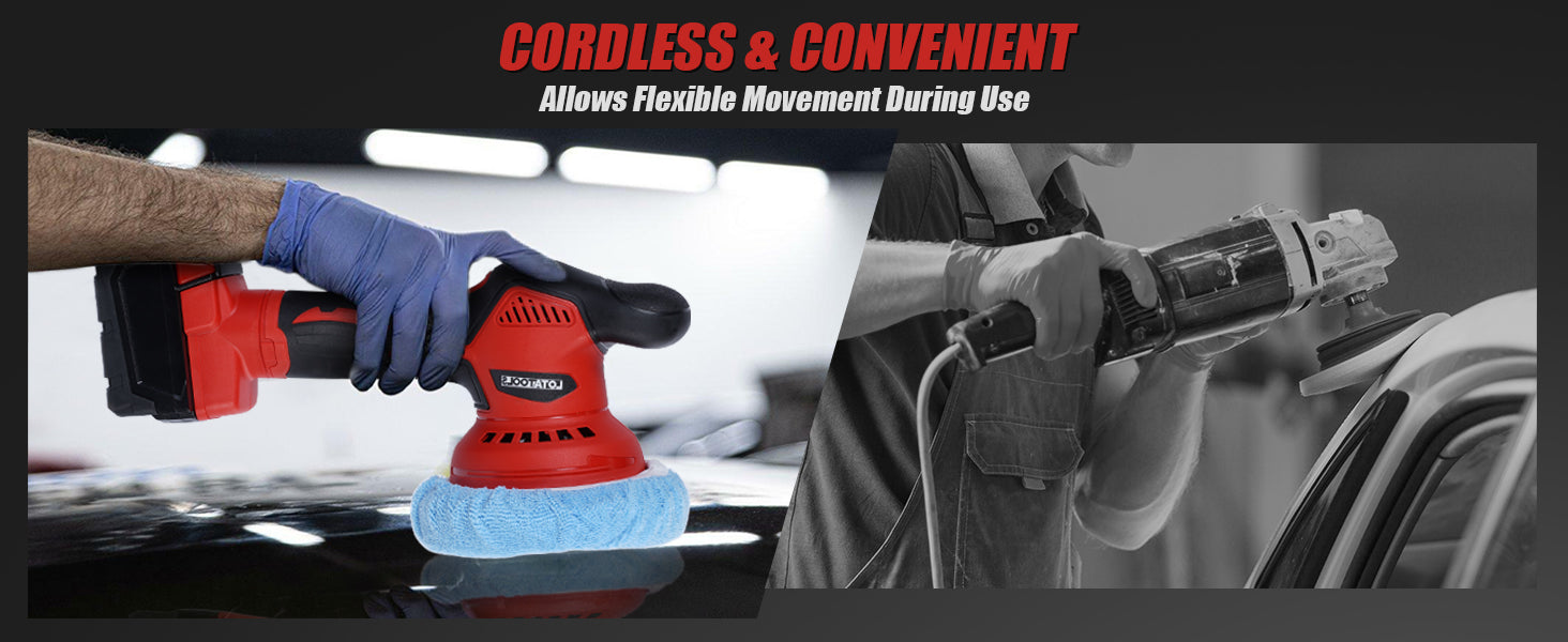 - 【Advanced Random Orbital Technology】 Harnessing innovative centrifugal disc technology, the 6-inch orbital buffer offers optimized performance by covering a larger surface area with every stroke. This technology not only improves efficiency but also reduces fatigue during extended use. Perfect for both car detailing professionals and hobbyists, the cordless design enhances maneuverability, making it easier to achieve a streak-free, high-gloss finish anywhere.