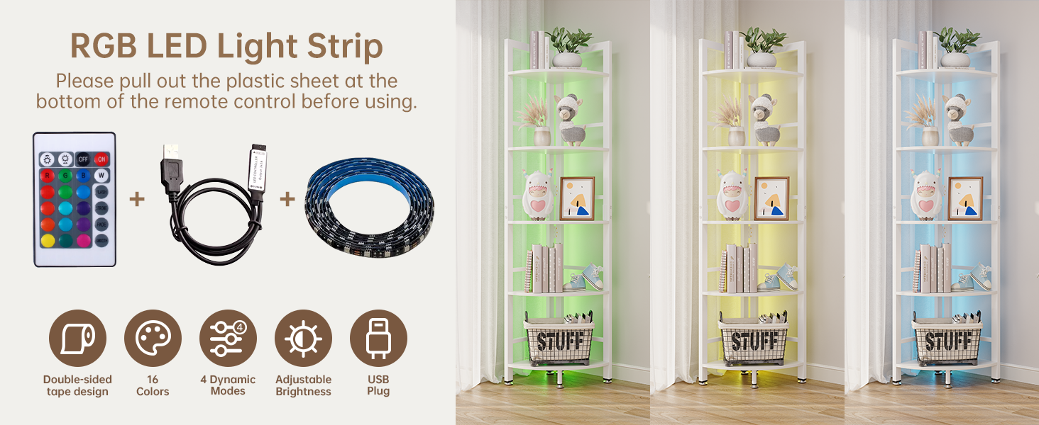 Special Feature | Space Saving, Durable, Corner Shelf with LED Light |