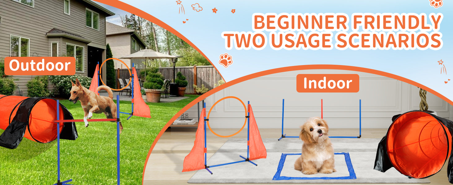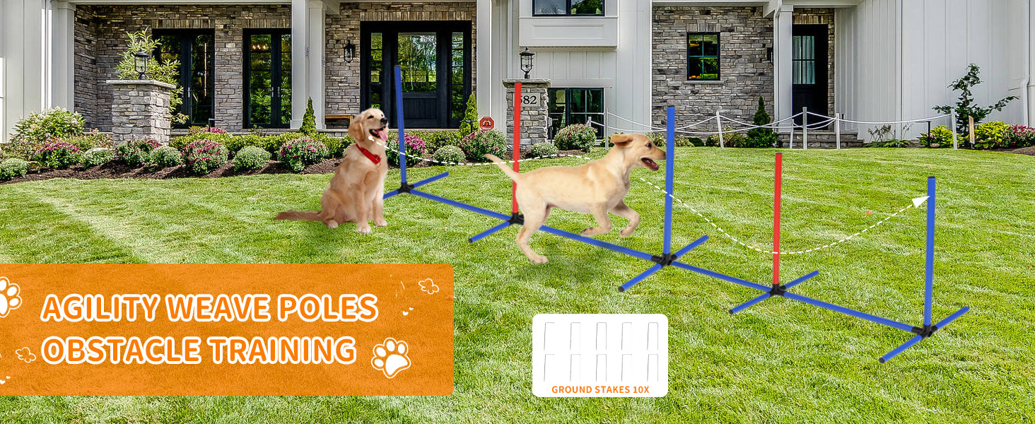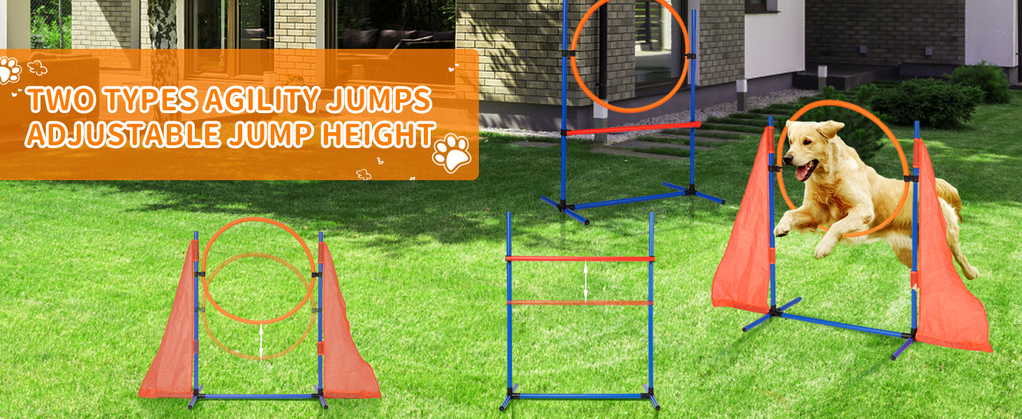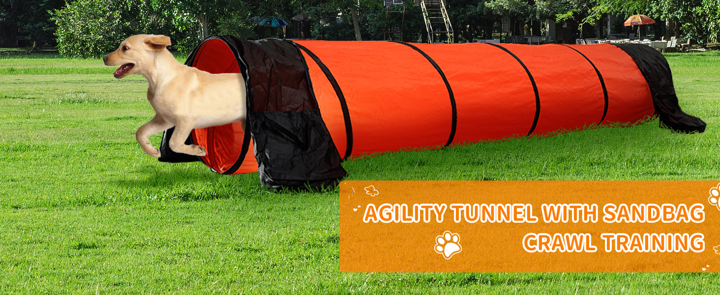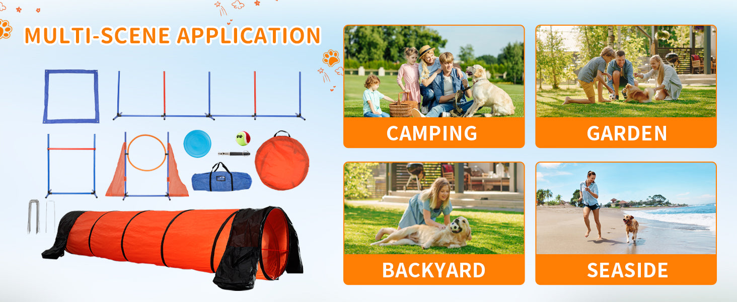 Included Components | Jumping ring & Agility braid pole, Frisbee, Pause box, Whistle & Tennis balls, Agility tunnel |