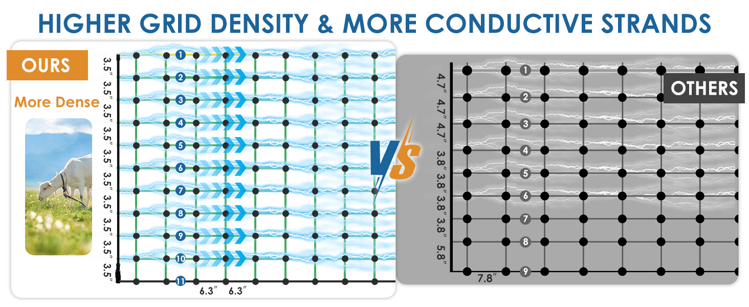 - 【Excellent Conductivity】: Our netting fence is equipped with 11 strands of posts, 10 of which are electrically conductive for better conductivity.