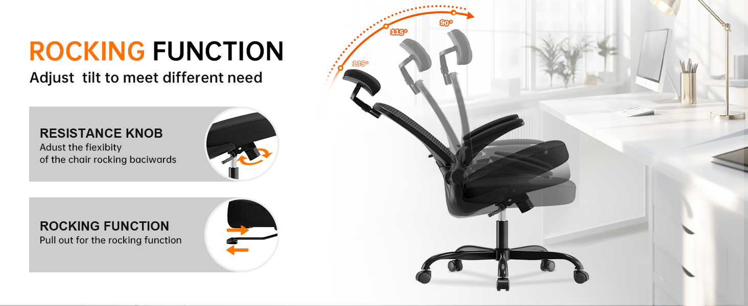 - Comfortable Breathable Mesh Chairs: This office desk chair with 20.5"*20.5" breathable mesh backrest, 3.1" thick cushion offers a spacious seating area, accommodating various body types, accommodates heights from 5'0" to 6'3". Overall dimensions (including arms): 25.5“ W x 23.2“ D x 48.2“-53.2“ H. Its unique recline function allows you to tilt the backrest (90~135°), bring your comfort and relaxation.