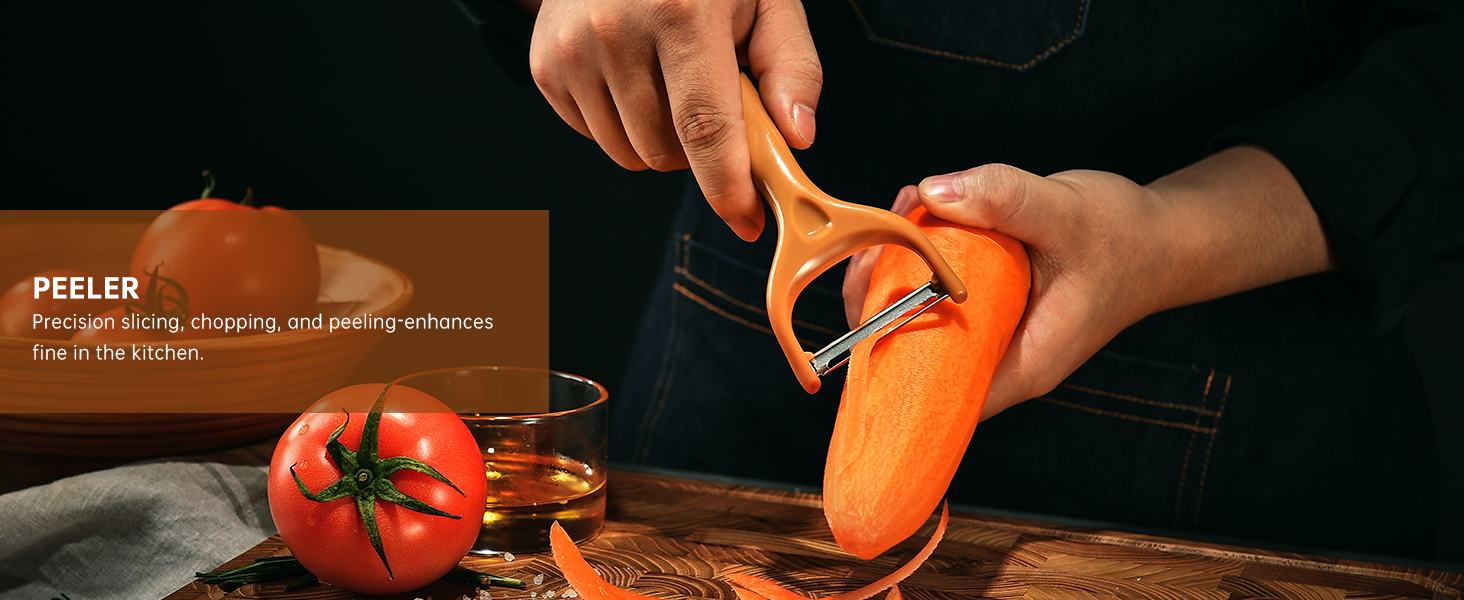 - Ergonomic Handle Design: Featuring an ergonomic shape that fits naturally in your hand, these handles are coated with a beautiful wood-grain finish made from lightweight PP and food grade safe material. The hand coating not only adds an aesthetic touch but also ensures a secure, non-slip grip, making every slice, dice, and chop effortless.