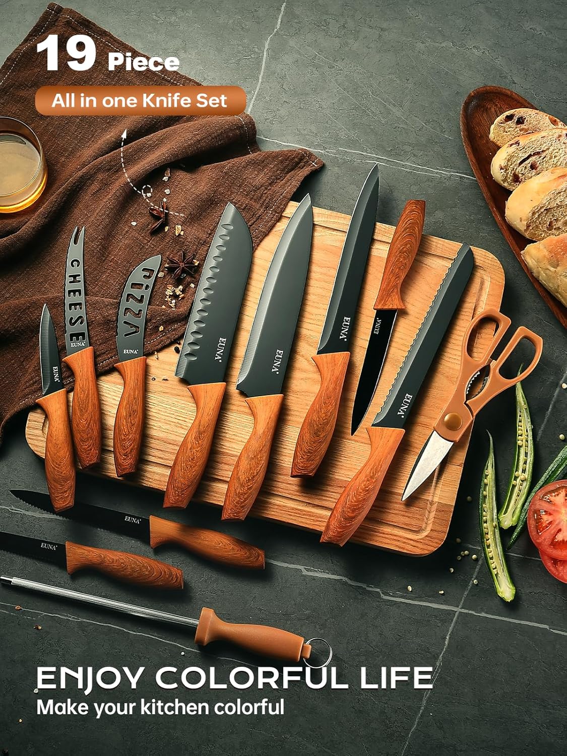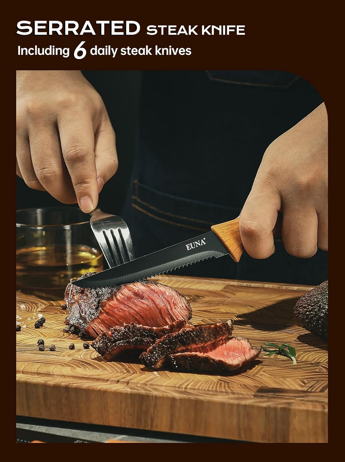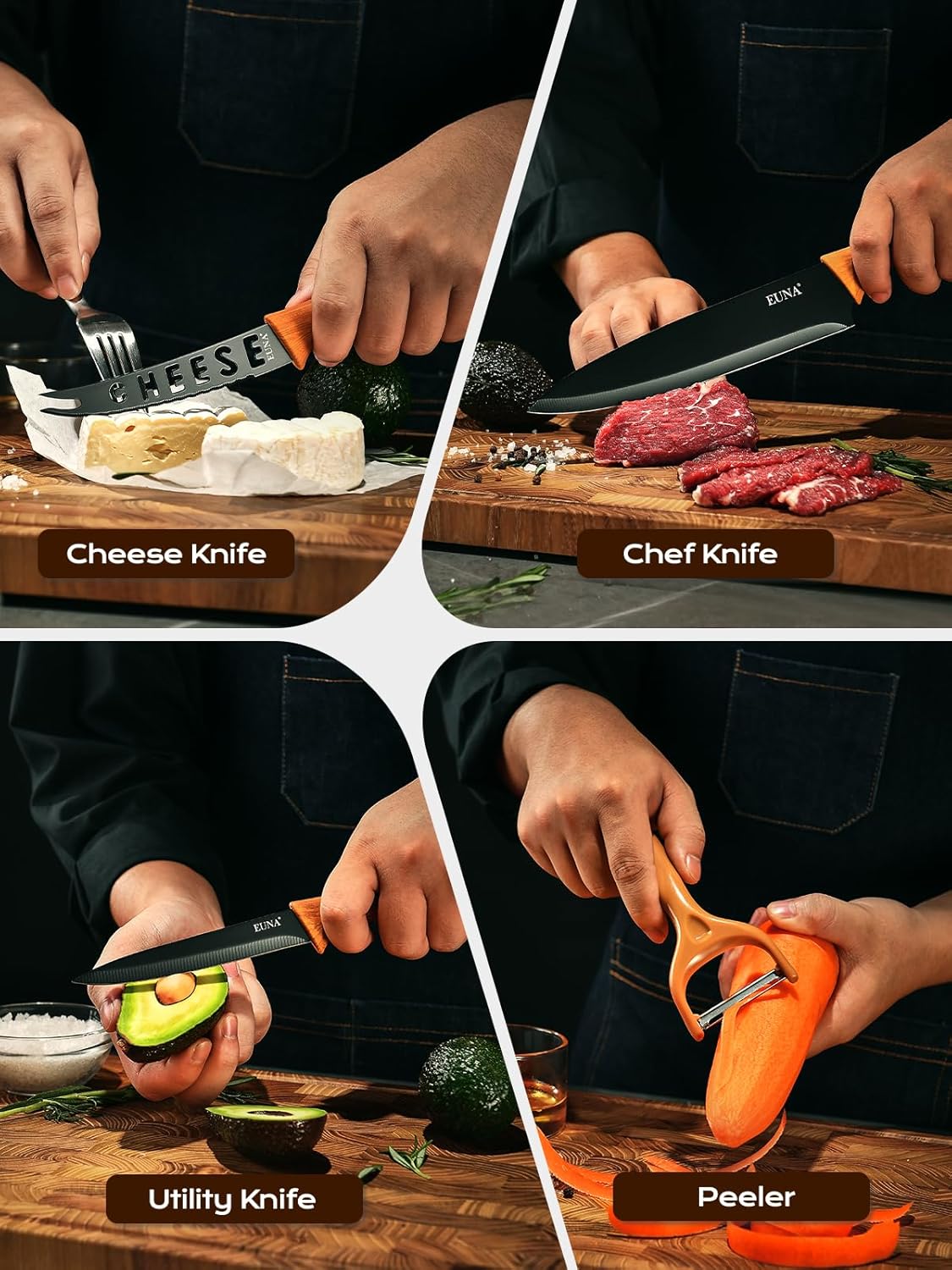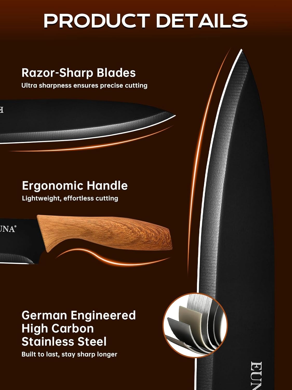- Anti-Rust Knife Set: Our knives feature an advanced food safe anti-rust coating, ensuring long-lasting freshness and resistance to rust, keep your knives consistently sharp and effortlessly handle everyday cooking tasks.