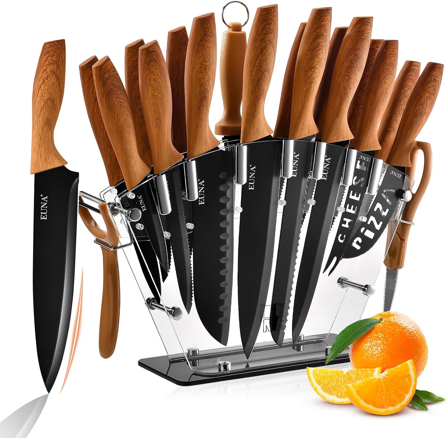 19 PCS Kitchen Knife Set with Acrylic Block & Sharpener, German High-Carbon Stainless Steel, Dishwasher Safe