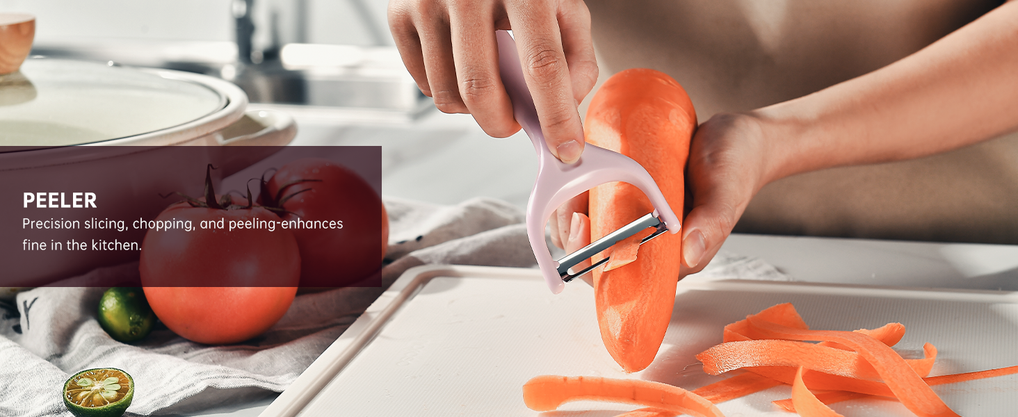 - Ergonomic Handle Design: Featuring an ergonomic shape that fits naturally in your hand, these handles are coated with a beautiful wood-grain finish made from lightweight PP and food grade safe material. The hand coating not only adds an aesthetic touch but also ensures a secure, non-slip grip, making every slice, dice, and chop effortless.