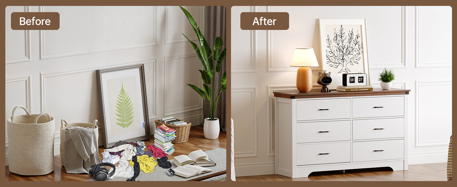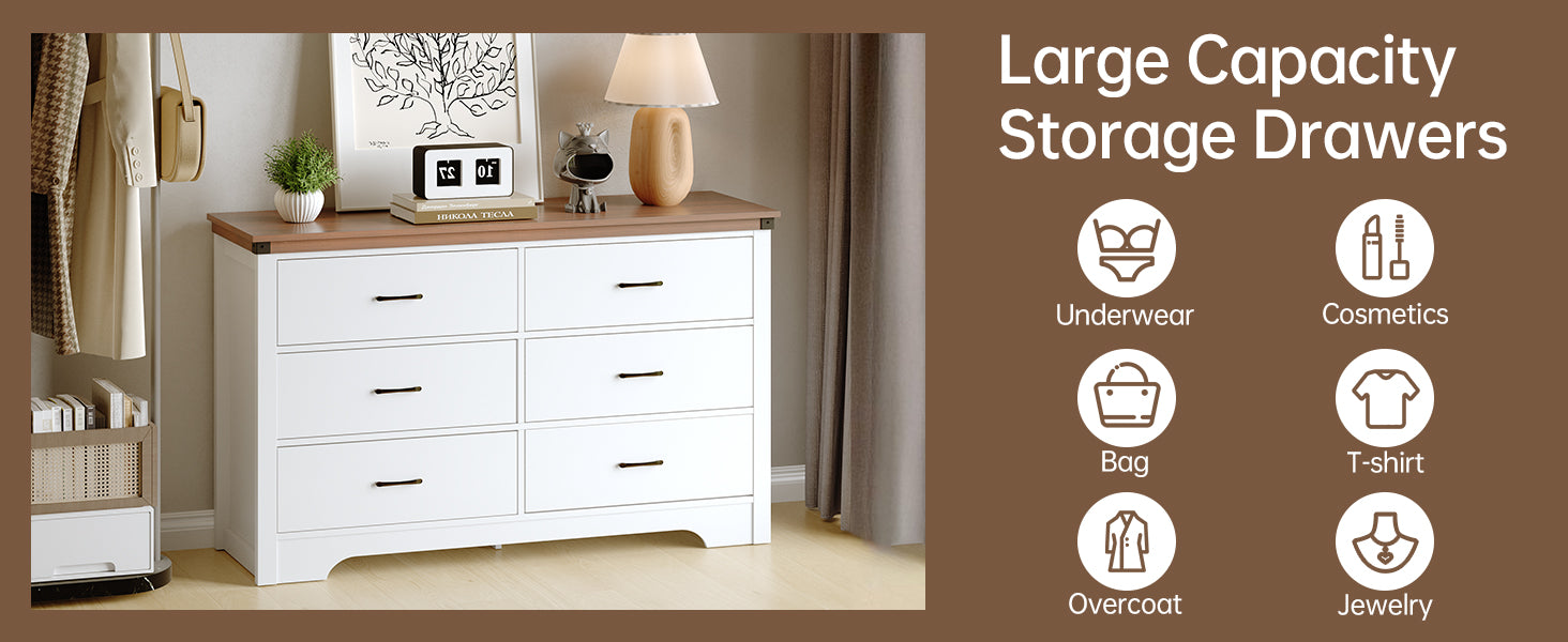 - 【Effortless Assembly】Our 6 drawer dresser includes straightforward and all screws and parts are clearly labeled, step-by-step assembly instructions. Additionally, an installation video is available on the product details page for further guidance. If you encounter any issues during assembly, our dedicated support team is here to provide professional assistance and ensure your satisfaction.