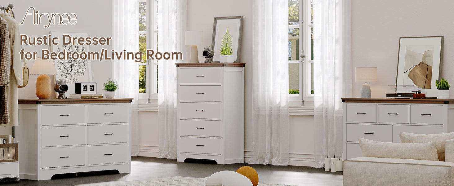 - 【Safe & Secure】This wide dresser includes wall anchors to prevent tipping, ensuring the safety of both you and your family. The drawers glide open and close smoothly, making it easy for everyone, including little kids, to access their belongings. The widened metal matte handles not only enhance the dresser's aesthetics but also provide a comfortable grip.