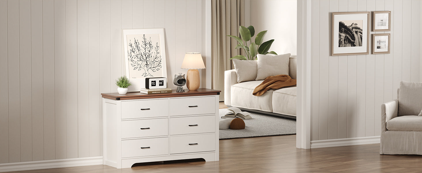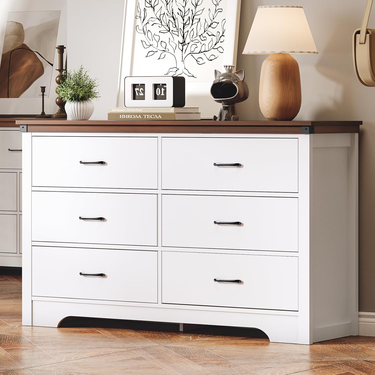 Farmhouse 6-Drawer Dresser, 51" Wide Wood Chest for Bedroom, Living Room & Hallway Storage