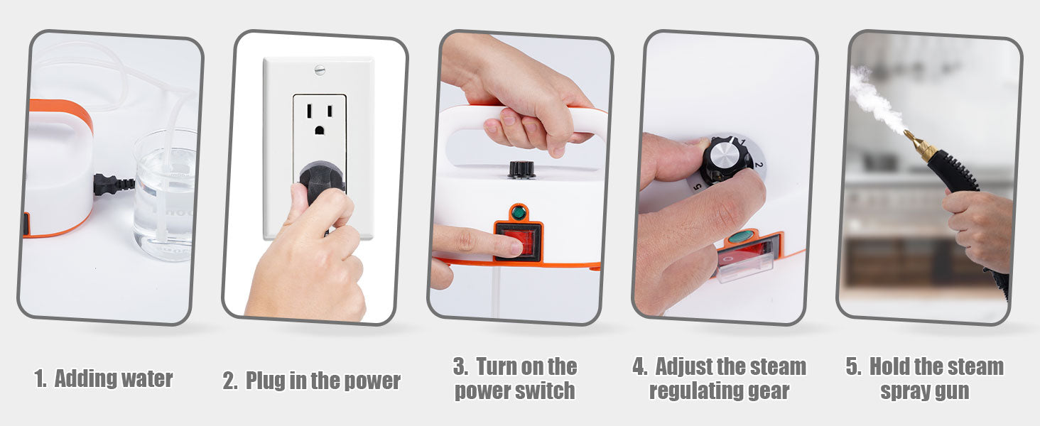 - 【6-speed Air Output Adjustment】 This steamer for cleaning has 6-speed air output adjustment. You can adjust it according to the intensity of the stain and the material requirements of the surface of the object to improve your efficiency