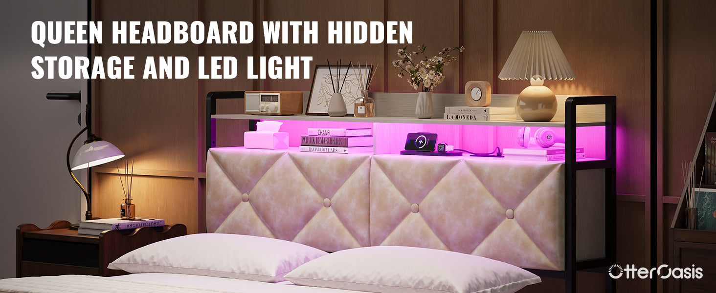 - Upholstered Headboard with Light: The OtterOasis PU Leather Headboard features a stylish diamond design, high-density foam for back support, built-in LED lighting, and a hidden storage compartment. Durable, easy to clean, and perfect for enhancing comfort and convenience