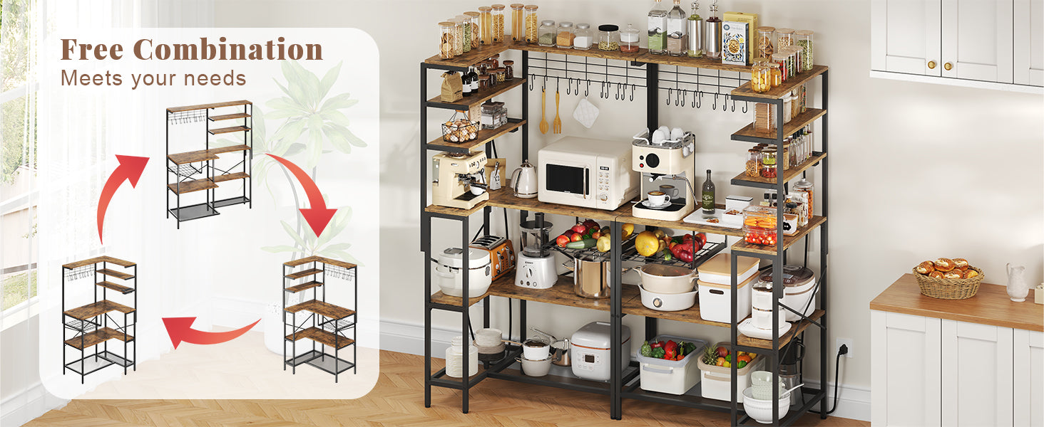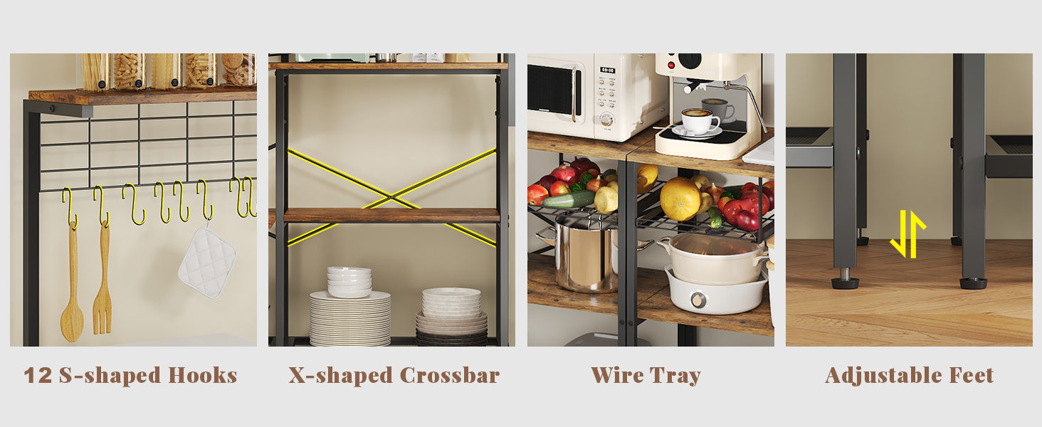 - Three Different Installation Methods: Perfectly suited to any scenario in your home.This baker’s rack combines durability with modern farmhouse charm. It’s built to last, supporting heavy appliances while adding a chic touch to your home decor.