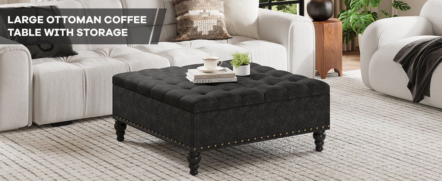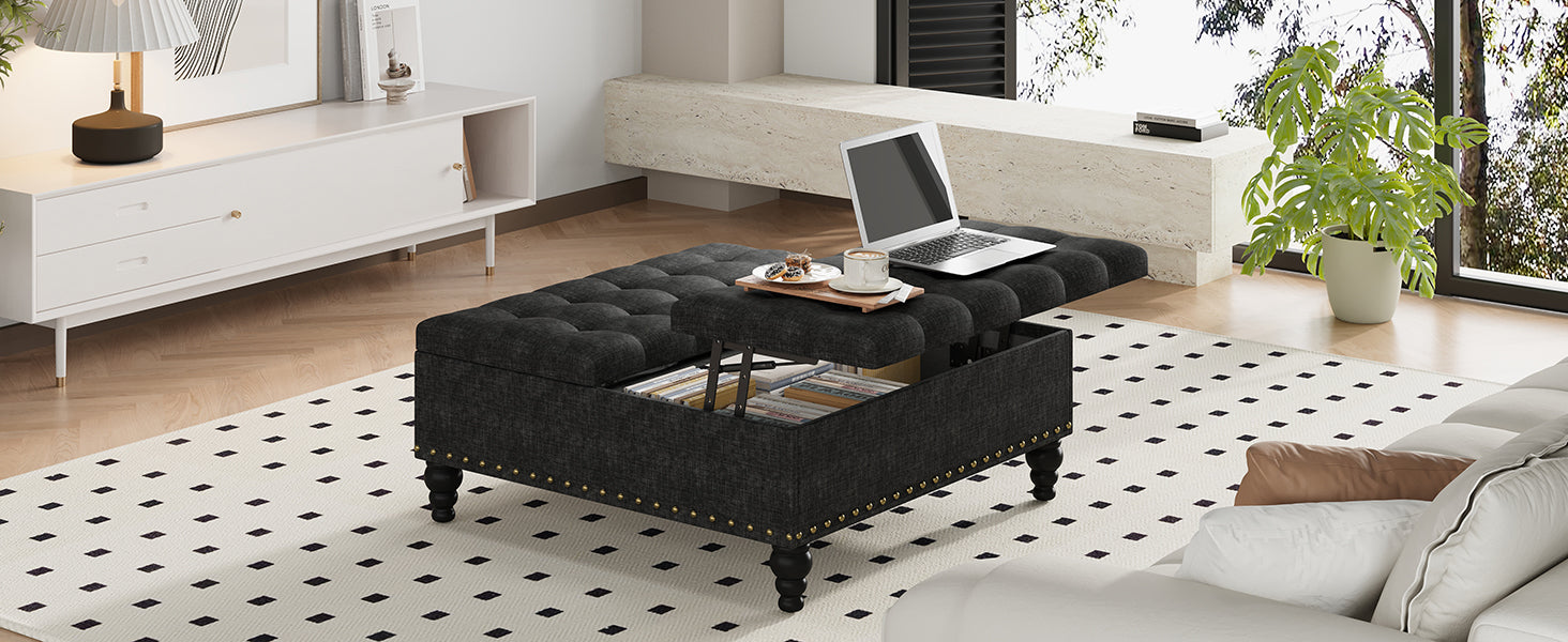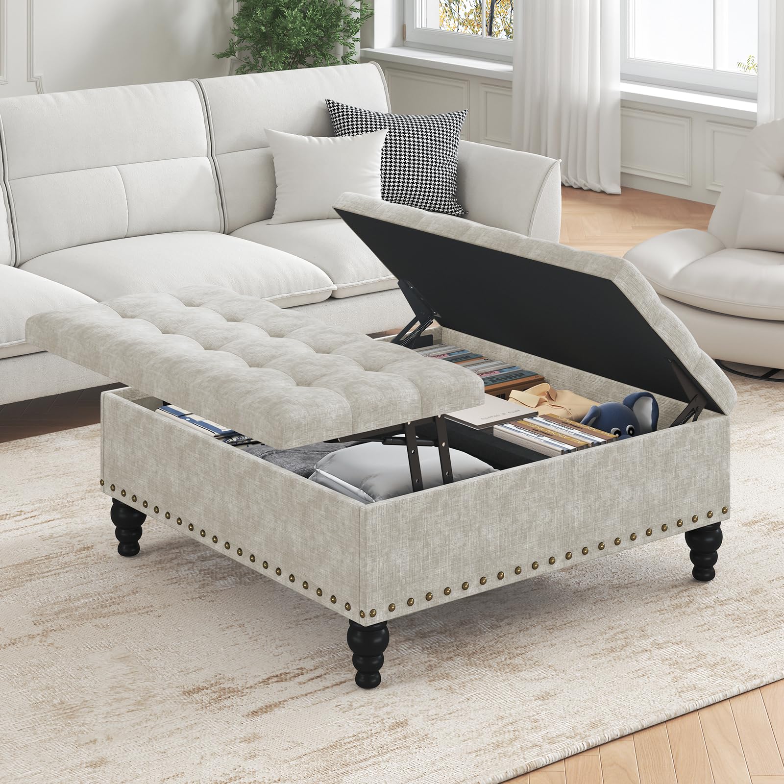- 【Versatile Functionality】: Our ottoman with storage can be used as a footrest, coffee table, and storage unit. The innovative lift-top design allows you to work or dine from the comfort of your sofa without having to move items. The upgraded pneumatic hinges ensure smooth and quiet operation, enhancing its practicality.