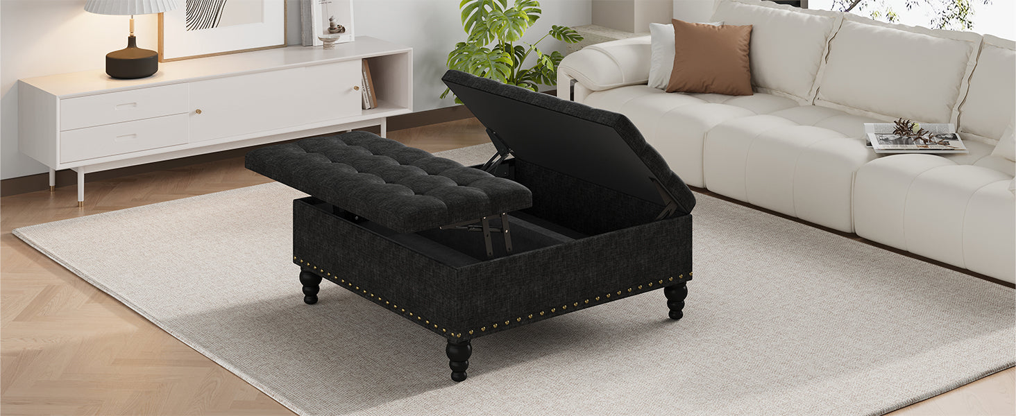 Large Square Storage Ottoman Bench, Lift-Top Coffee Table, Toy Box Footrest for Living Room, Black