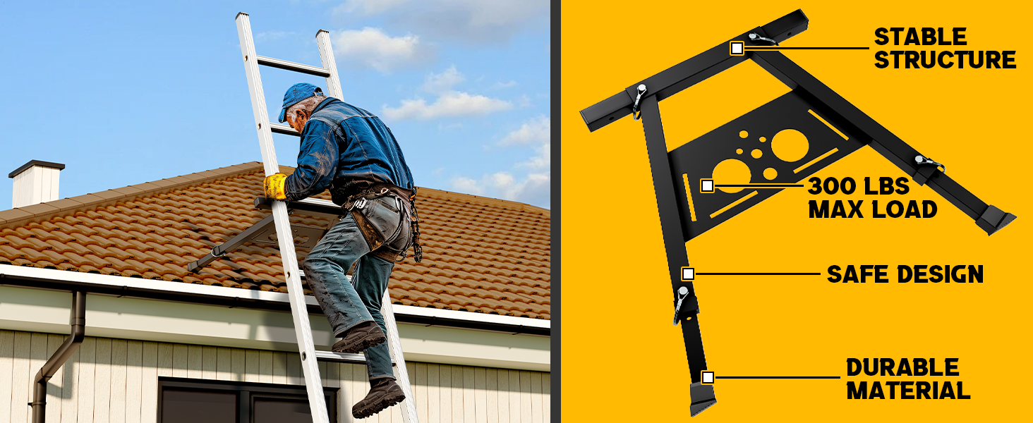 Ladder Stabilizer Adjustable Length, Roof Standoff, Extension Ladder Accessory, 350 LBS