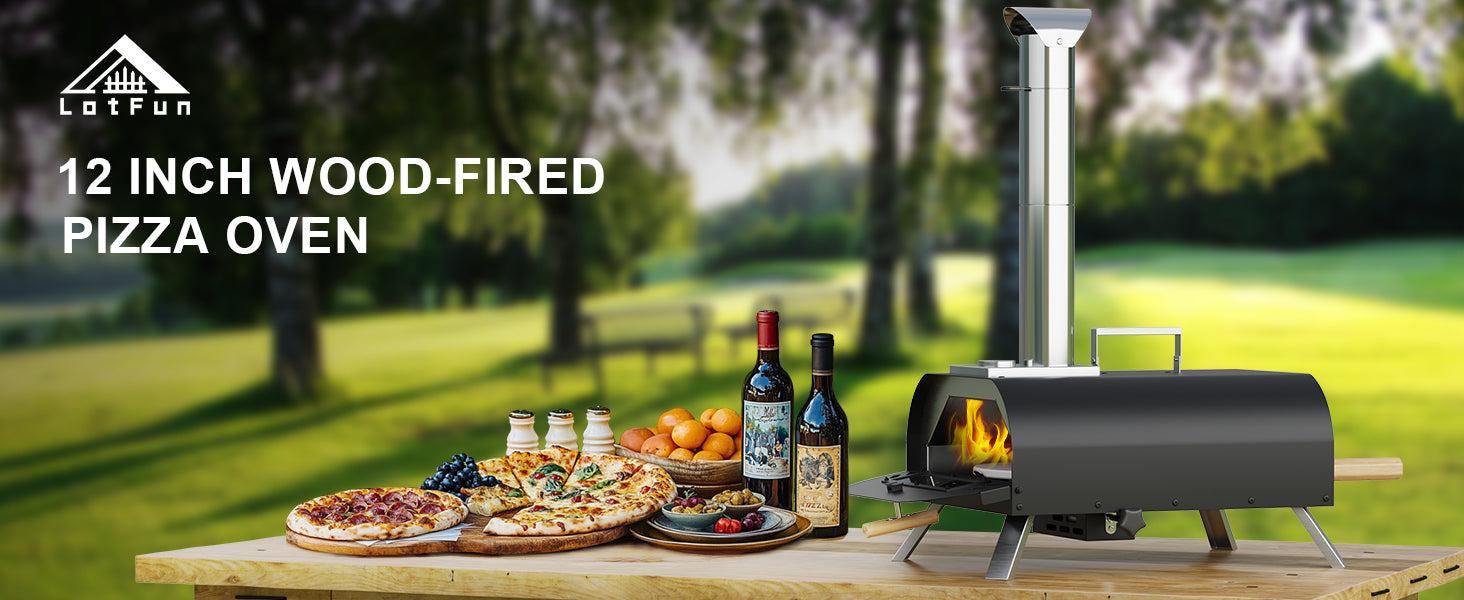 - GREAT OVEN FOR NEAPOLITAN-STYLE PIZZA - LotFun outdoor pizza oven can burn wood chips and pellets to add a special smoky wood flavor to pizza that gas ovens don't have, you can make wood-fired pizza at backyard barbecues, beach parties and camping trips
