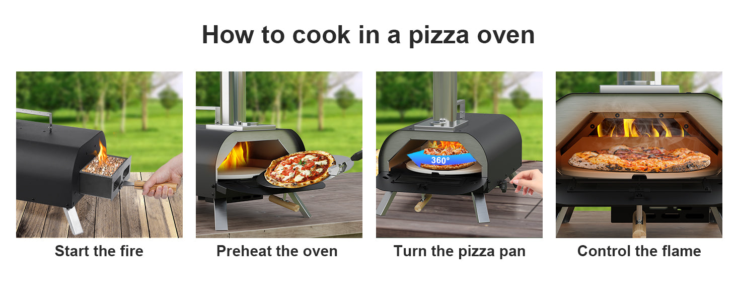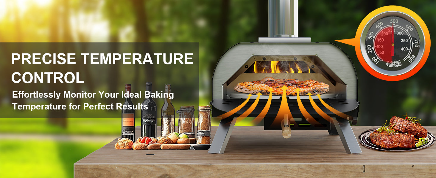 - BAKE EVERY PIZZA FAST - Our pellet pizza oven takes about 18-20 minutes to preheat, reaches a temperature of 570 to 660°F (350°C), and can bake delicious pizzas in 90 seconds or less (not only for pizza, but also for steak, fish, chicken wings and vegetables)