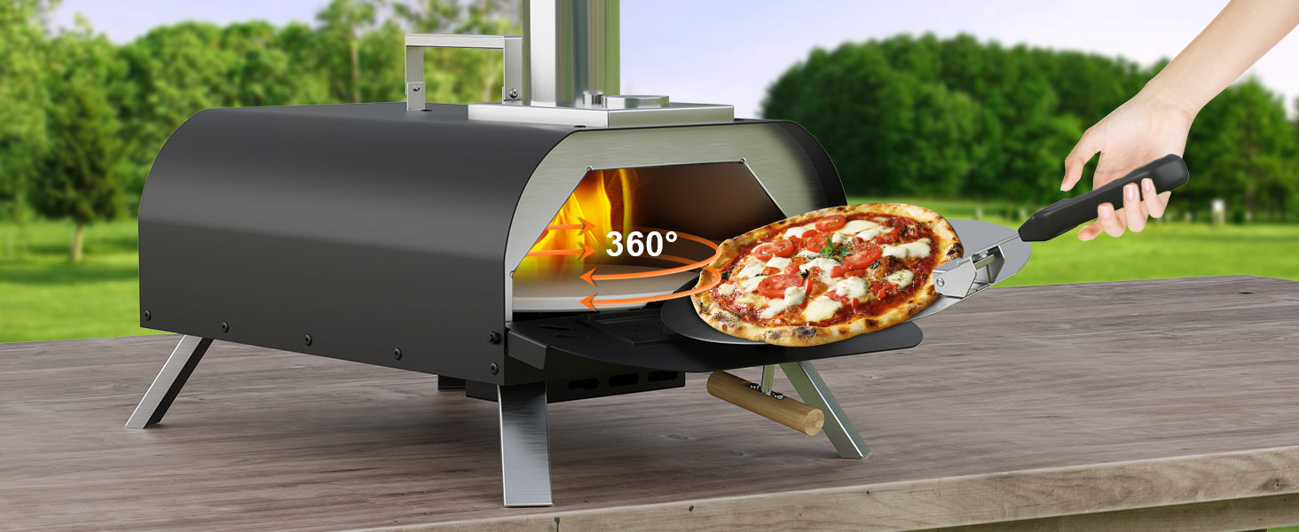 12" Outdoor Pizza Oven, Portable Wood Fired Oven with Rotating System, Stone & Shovel