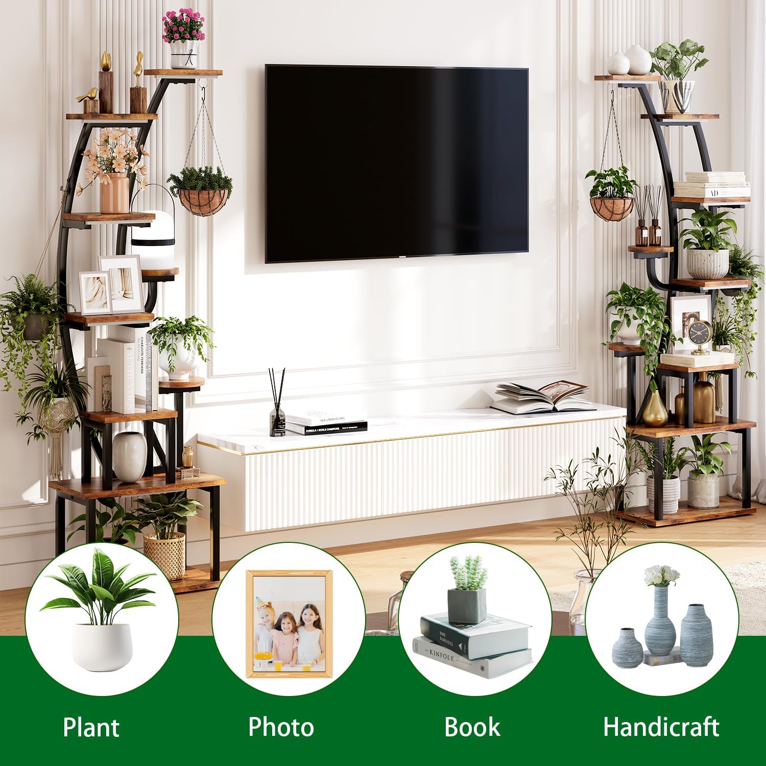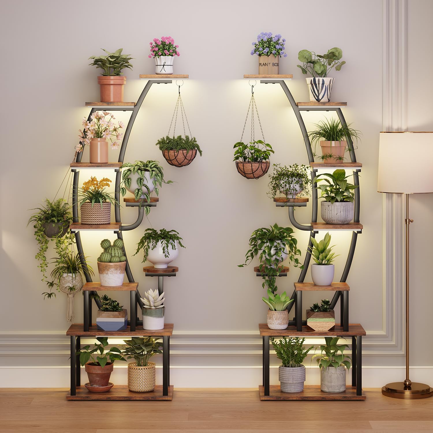 LotFun Plant Stand Indoor with Grow Lights, 9 Tiered Indoor Metal Plant Shelf 2 Pack, 64" Tall Plant Stand for Indoor Plants Multiple, Curved Shape Rack Plant Holder, Large Holder Display Shelf for Living Room, Garden, Patio