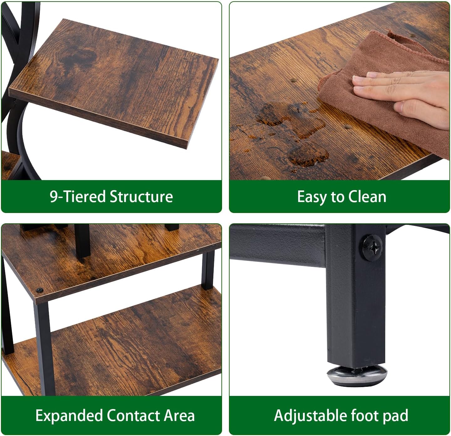 - 【9-Tier, 64" Tall Plant Stand】 As a decoration, the plant rack is 64 inches tall and has a total of 9 tiers. Its vertical design optimizes the use of home space while providing ample room for displaying plants. The square bottom plate is flat, thick, and reinforced, making it less prone to tipping. Also, its removable, adjustable casters allow you the flexibility to change the shelf's position easily