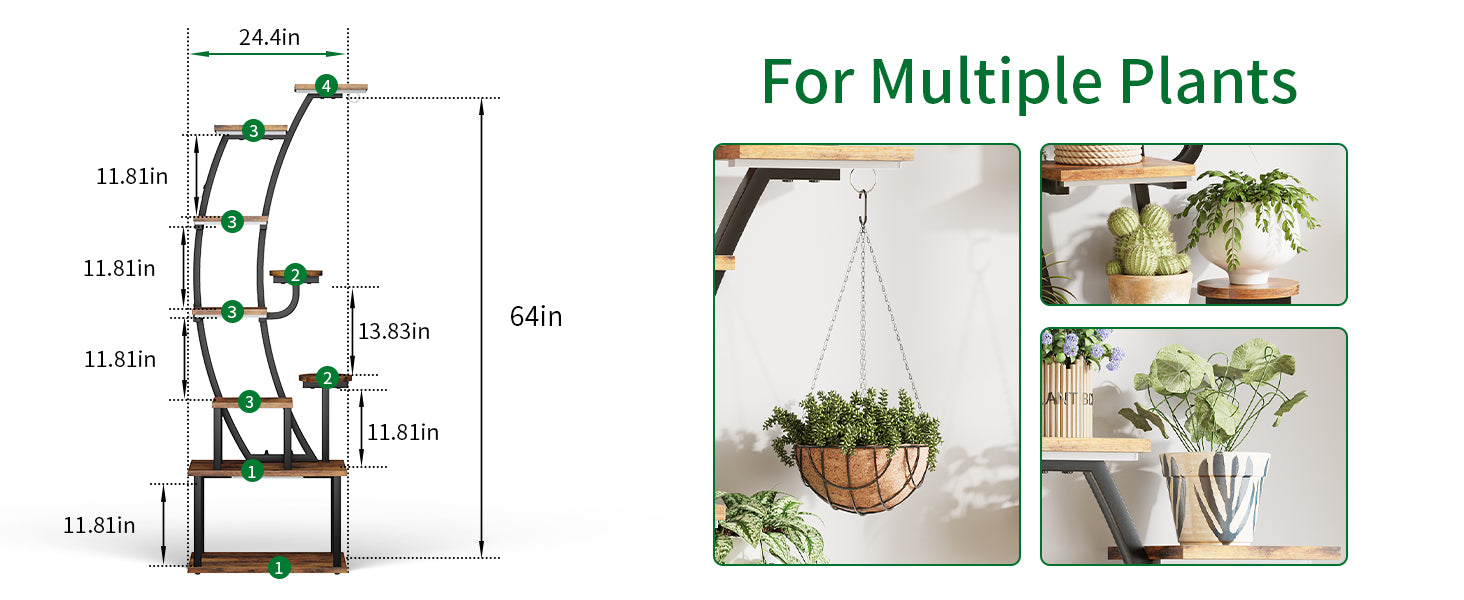 - 【Easy to Assemble】No complicated installation required. We provide all the tools you might need, including a screwdriver and a small wrench. Clear instructions are included to help you effortlessly assemble the tiered plant stand. Additionally, we’ve included furniture straps that can be attached to the stand to prevent tipping.