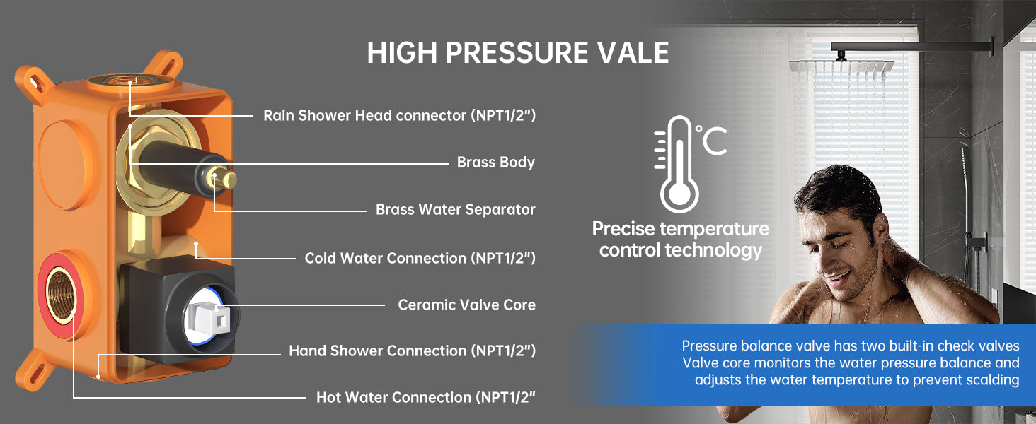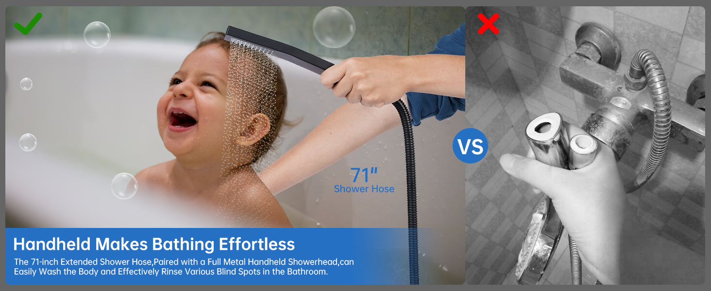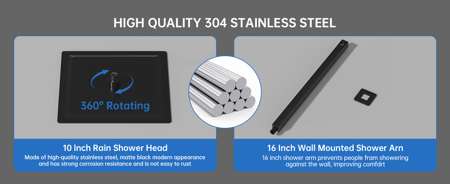 - ✅Sturdy and Durable, a Choice of Quality: Our all metal shower faucet set is made of solid brass valves and pure metal, extremely sturdy. The rain shower head with handheld spray can easily handle minor collisions in daily use or long-term water impact. Rainfall shower system is durable and a reliable partner in your bathroom. One purchase means long-term companionship. In every shower, you can feel its solidity and reliability, adding a sense of security to your shower time.