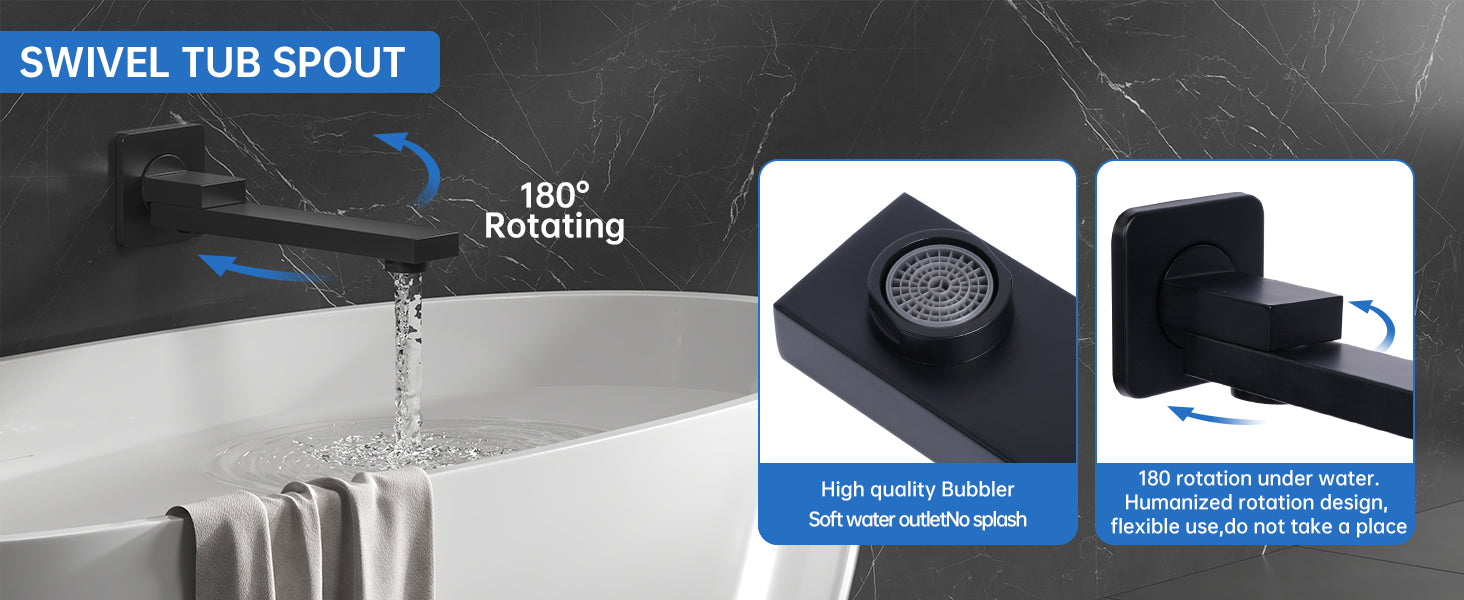 - ✅Three Outlet Design, Meet Various Needs: The waterfall shower system with tub spout provides large-area shower coverage, allowing your whole body to be immersed in warm water flow. The Handheld Sprayer makes it convenient for you to freely rinse various parts of your body. Whether it's washing your hair or cleaning your feet, it can be easily done. The tub spout meets other special water needs. With three outlets, shower system provides you with all-round shower choices.