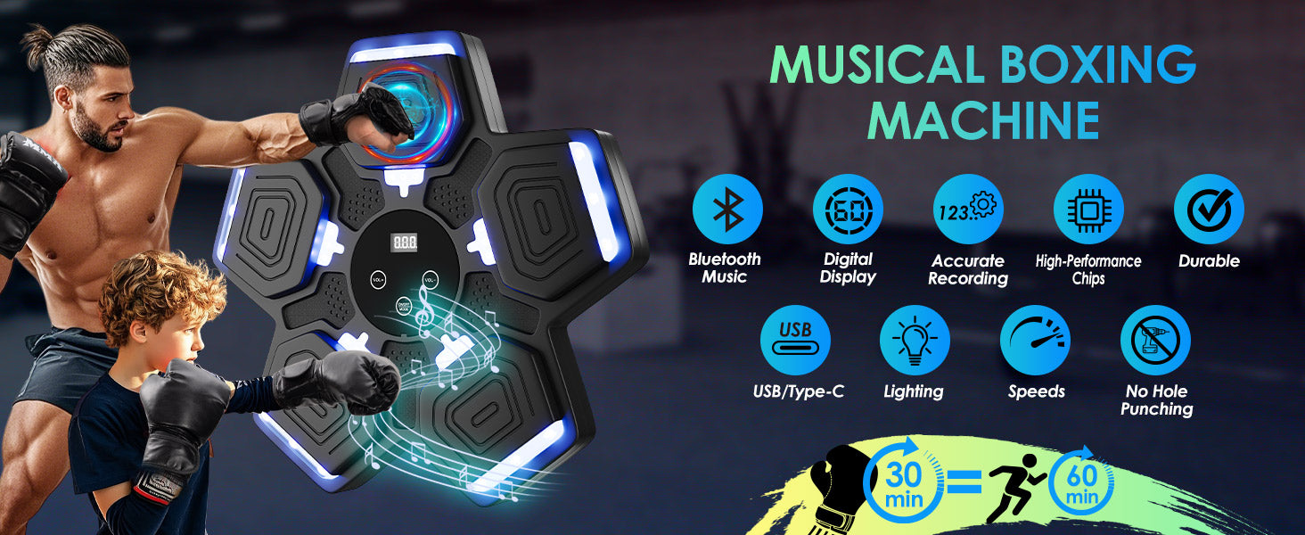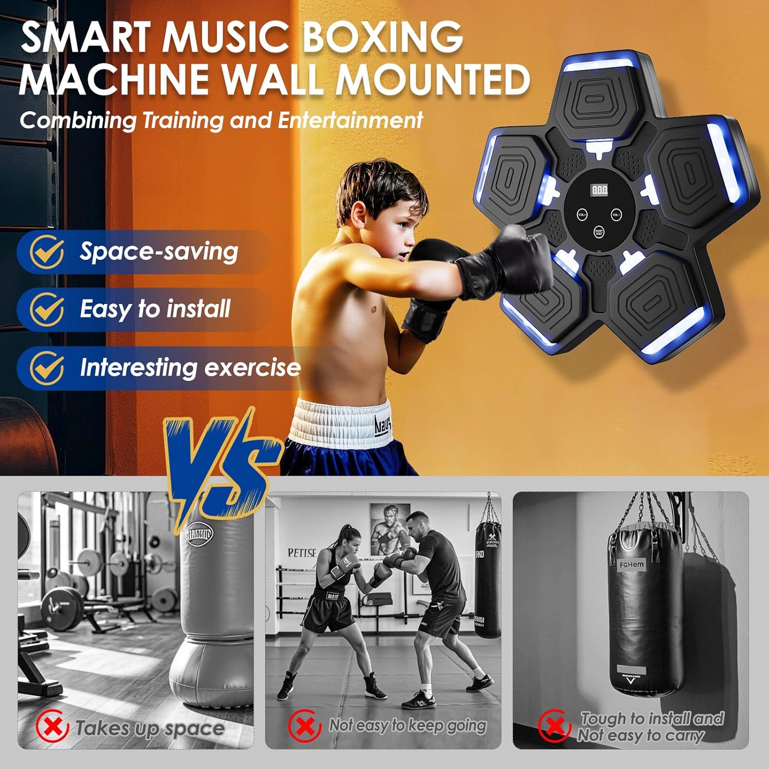 Music Boxing Machine for Adults and Kids, Smart Bluetooth Boxing Training Equipment 5 Targets with Boxing Gloves Wall Mounted, Workout Punching Machine for Home, Gym, Office
