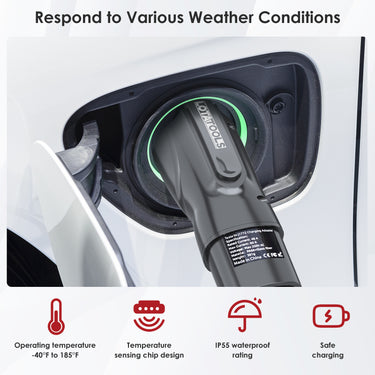- 🚗【Safety & Intelligent】 - The LotaTools J1772 adapter is designed to perform reliably in extreme temperatures, ranging from -40°F to 185°F. Whether you're facing thunderstorms, scorching heat, or snowstorms, it ensures safe charging no matter the conditions. Equipped with an intelligent chip, it offers enhanced safety features by automatically shutting off power during severe weather to protect both your vehicle and your personal safety.